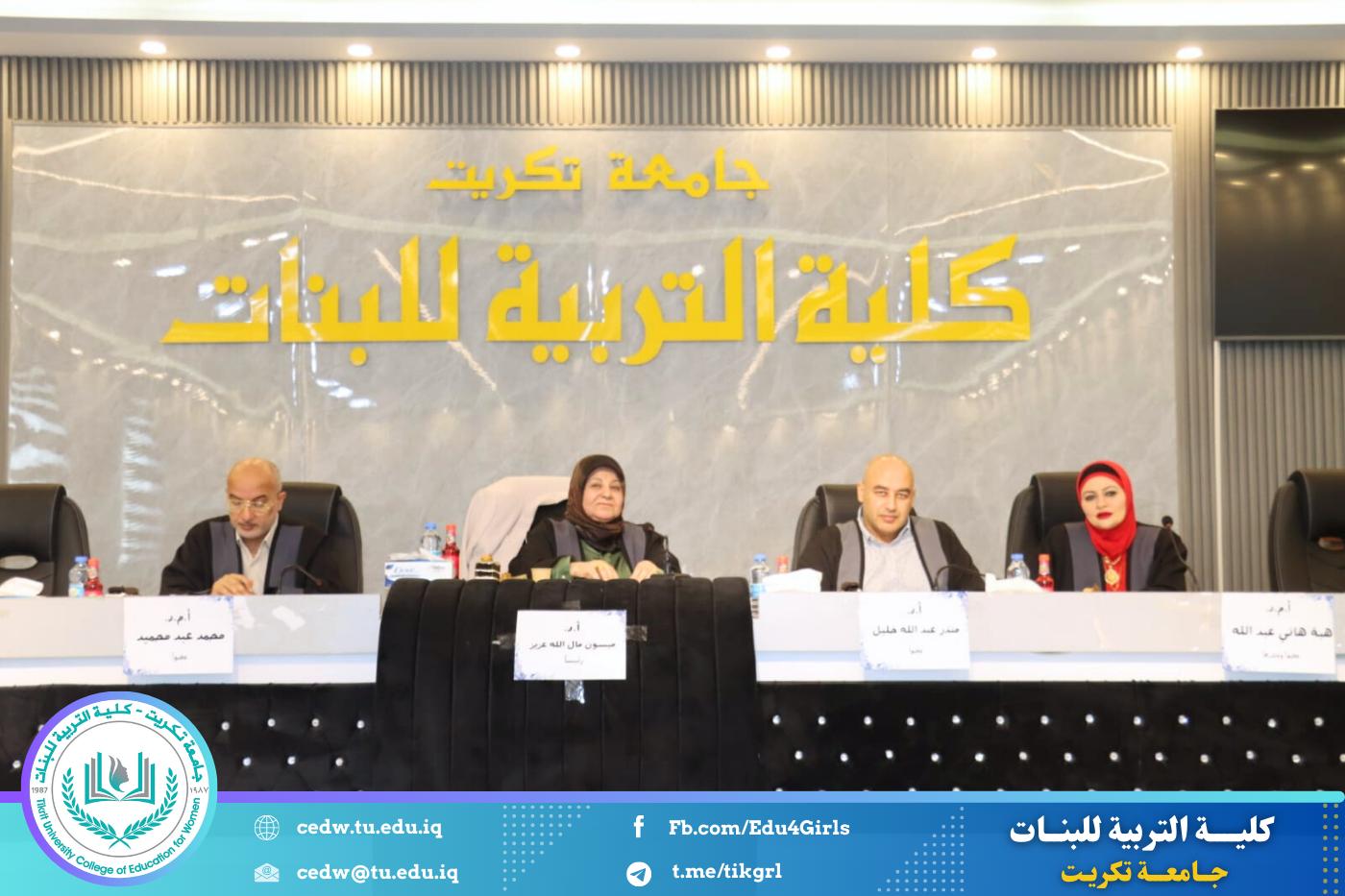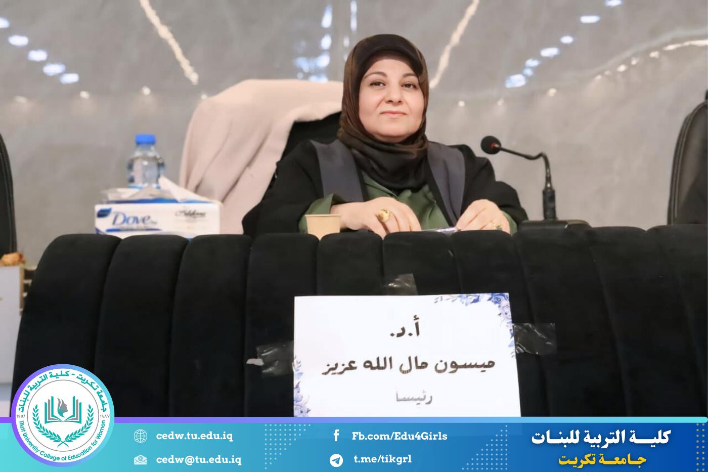 شهدت كلية التربية للبنات بجامعة تكريت/ قسم الرياضيات، صباح يوم الثلاثاء الموافق ٩ أيلول ٢٠٢٥، مناقشة رسالة الماجستير المقدّمة من الطالبة (إيلاف سعيد شعبان)، والموسومة: "استقرارية نماذج فورير للانحدار الذاتي لتوزيع الفرق الزمني ديناميكيًا مع التطبيق"، وذلك على رحاب قاعة المرحوم الأستاذ الدكتور جايد زيدان.