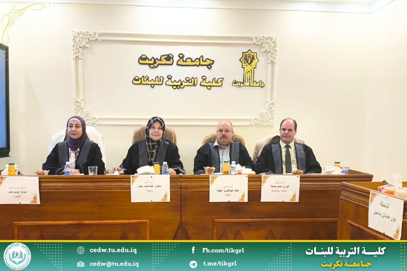 وفي ختام جلسة المناقشة، قررت اللجنة قبول الرسالة ومنح الطالبة نور عدنان ياسين درجة الماجستير في الكيمياء، بعد إجراء التعديلات التي أوصت بها اللجنة