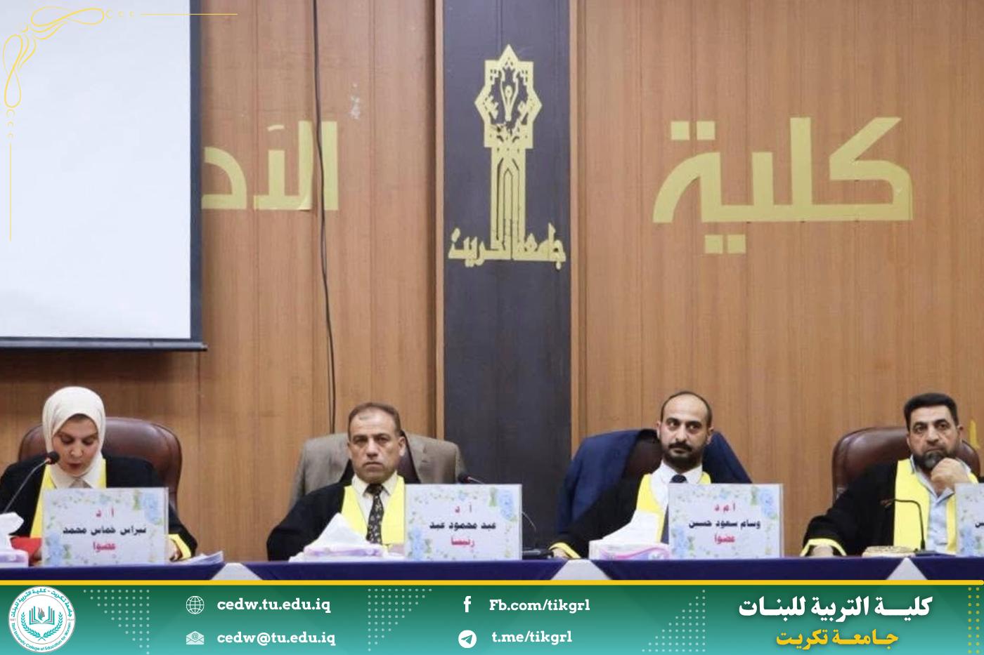 شارك الأستاذ المساعد الدكتور وسام سعود حسين داود، التدريسي في قسم اللغة العربية بكلية التربية للبنات – جامعة تكريت، في عضوية لجنة مناقشة رسالة ماجستير في قسم اللغة العربية بكلية الآداب – جامعة تكريت، والمقدَّمة من الطالبة هالة محمد عبد محمود، والموسومة: "الفقد في شعر الفرسان في العصر الجاهلي".