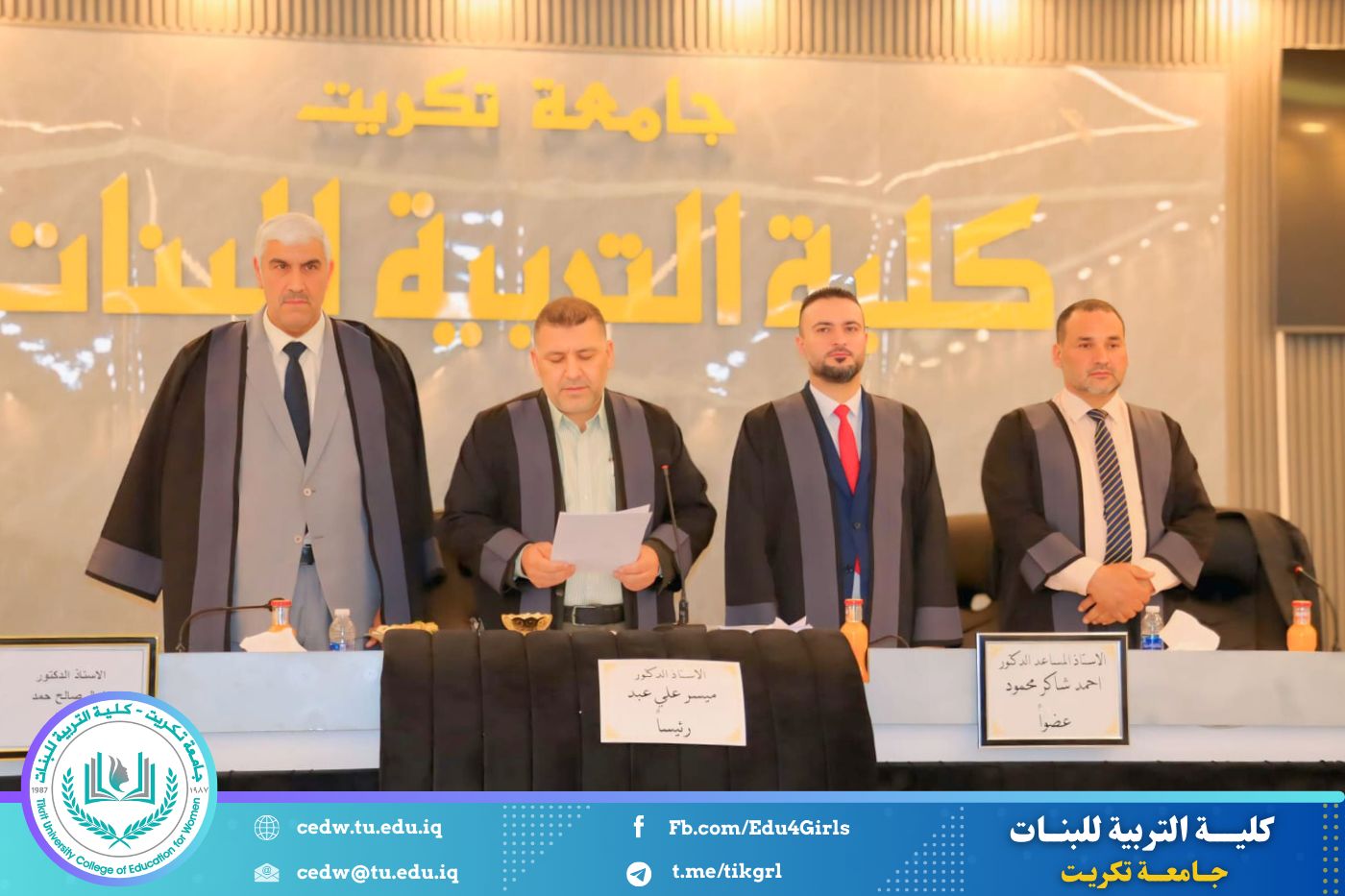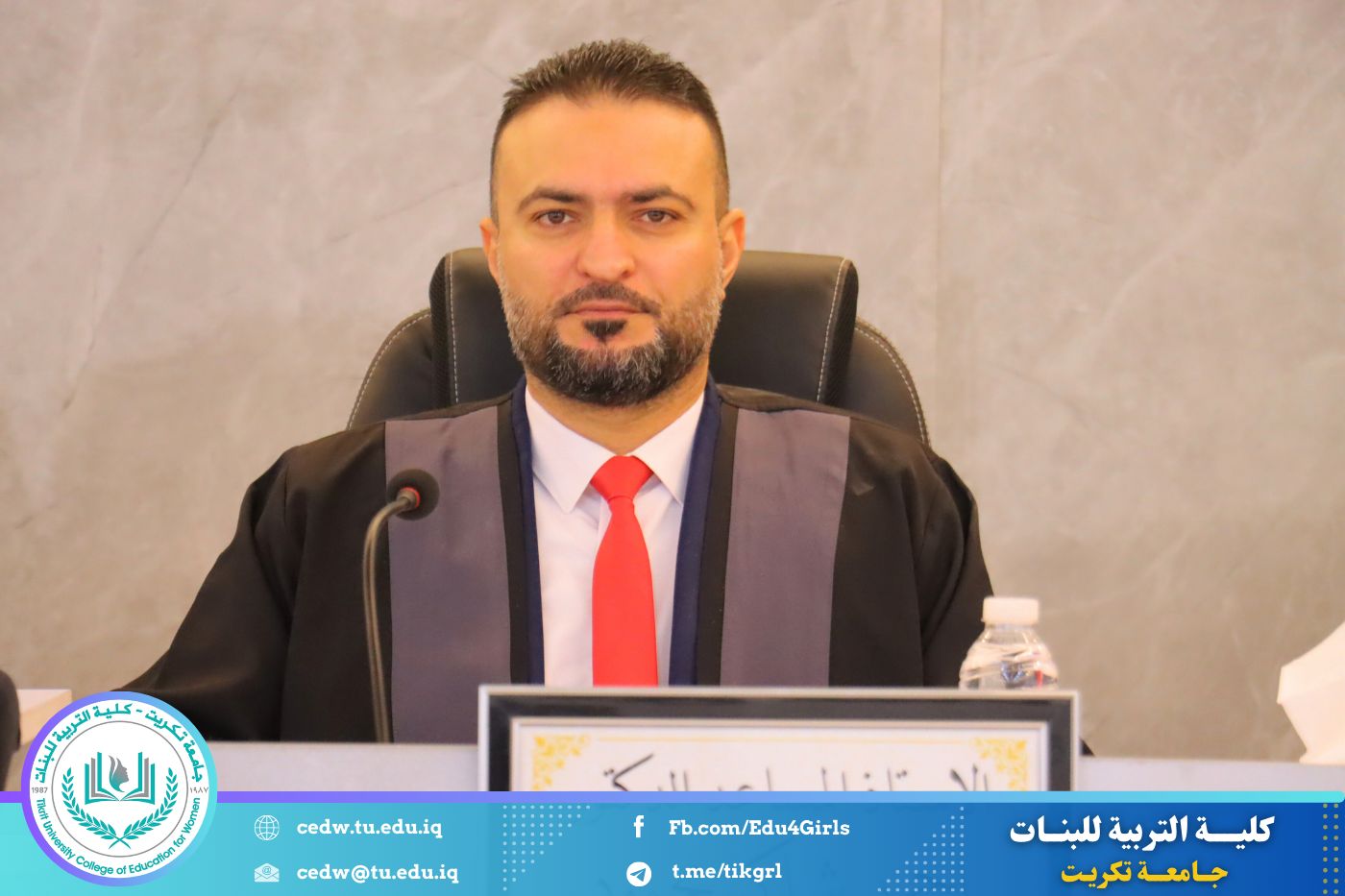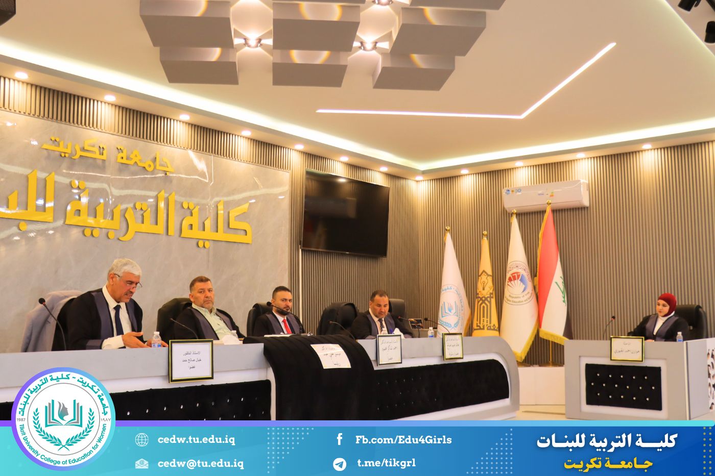 شهدت كلية التربية للبنات – جامعة تكريت – قسم علوم القرآن والتربية الإسلامية، صباح اليوم الأربعاء الموافق ١٨ / ٢ / ٢٠٢٦، وعلى قاعة المرحوم الأستاذ الدكتور جايد زيدان، مناقشة رسالة الماجستير المقدَّمة من الطالبة هوازن أحمد حسن، والموسومة: