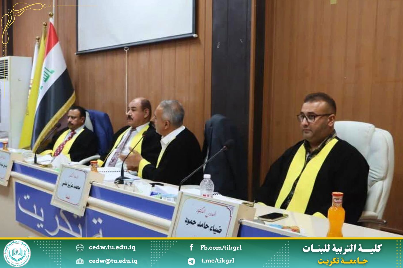أقيمت جلسة المناقشة على رحاب قاعة المرحوم الدكتور خالد عبد حربي – كلية الآداب / جامعة تكريت، حيث قدّم الدكتور ياسين عبدالله خلال المناقشة مجموعة من الملاحظات العلمية الثرية والمداخلات النقدية البنّاءة، التي عكست خبرته الأكاديمية وأسهمت في إثراء الحوار وتعميق الرؤية التحليلية لدى الباحث.
