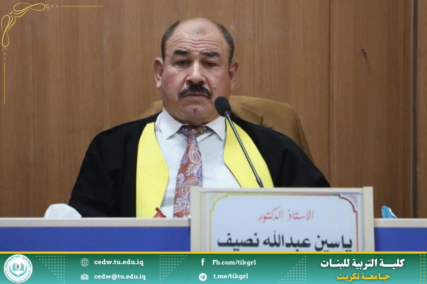 شارك الأستاذ الدكتور ياسين عبدالله نصيف، التدريسي في قسم اللغة العربية بكلية التربية للبنات – جامعة تكريت، في عضوية لجنة مناقشة خارجية لرسالة ماجستير في قسم اللغة العربية بكلية الآداب – جامعة تكريت، والمقدَّمة من الطالب (عبد العزيز ياسر خلف)، والموسومة: