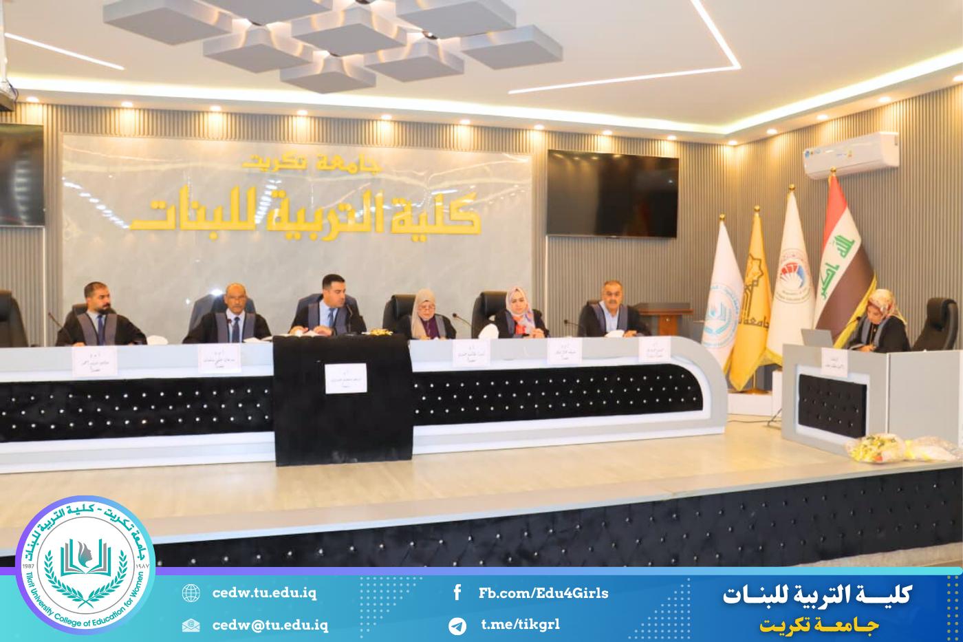 نوقشت في كلية التربية للبنات – قسم الكيمياء، اليوم الأحد الموافق 28 / 9 / 2025، على قاعة المرحوم الأستاذ الدكتور جايد زيدان في عمادة الكلية، أطروحة الدكتوراه المقدمة من الطالبة ياسمين مطشر خضر، والموسومة: