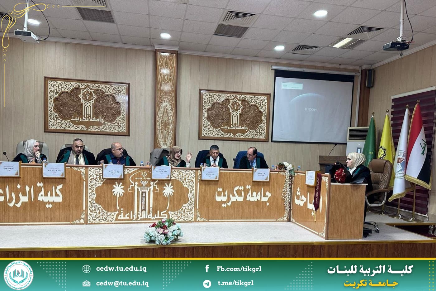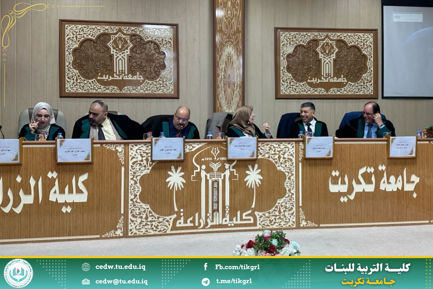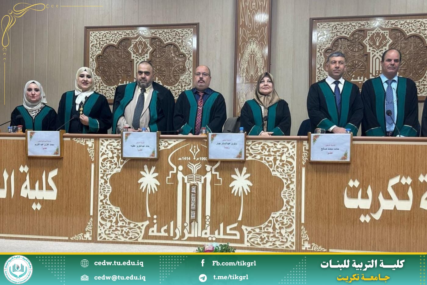 نوقشت في كلية التربية للبنات جامعة تكريت قسم الكيمياء ، اليوم الخميس الموافق 27/ 2/ 2024 ، وعلى رحاب قاعة المرحوم الدكتور صباح بهاء الدين