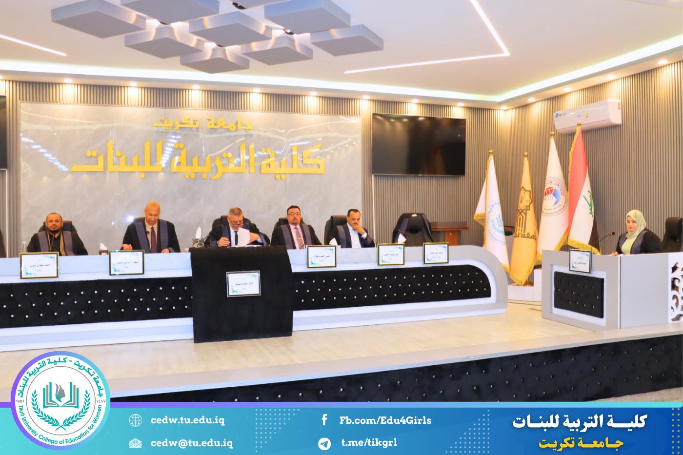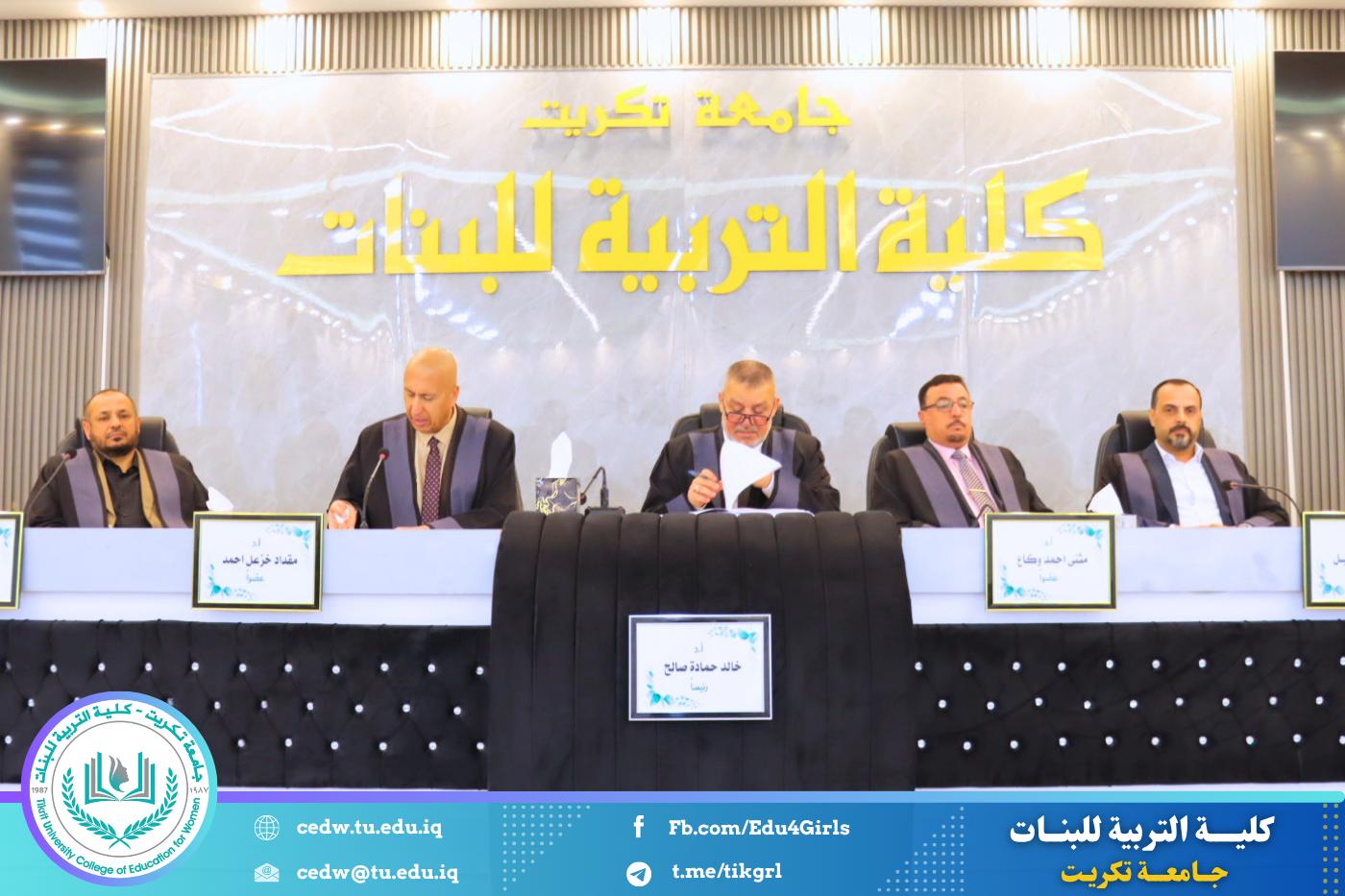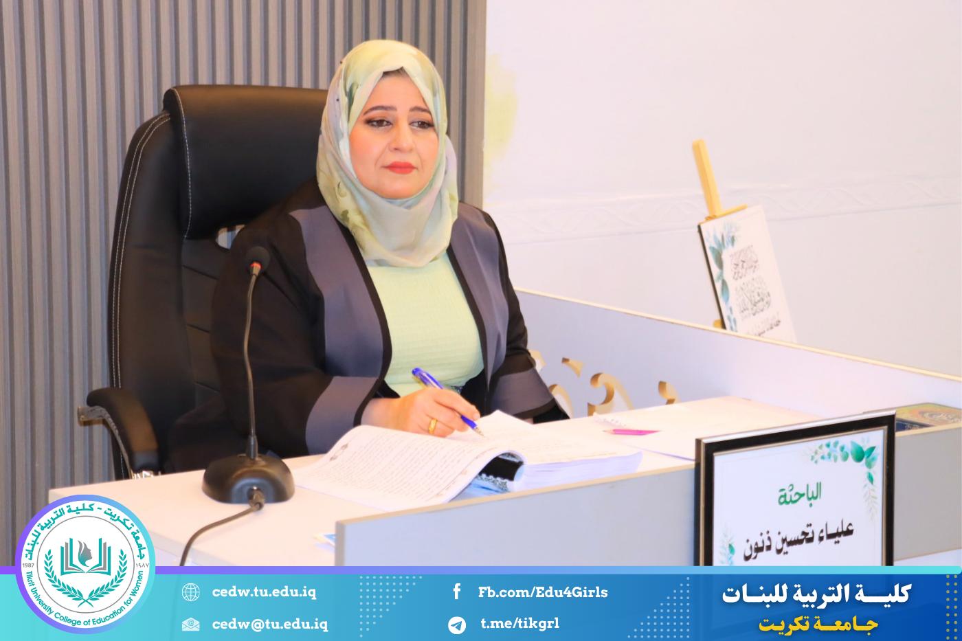 نوقشت في كلية التربية للبنات – قسم علوم القرآن، يوم الأربعاء الموافق 25 / 3 / 2026، وعلى قاعة المرحوم الأستاذ الدكتور جايد زيدان في عمادة الكلية، أطروحة الدكتوراه المقدّمة من الطالبة علياء تحسين دنون، والموسومة: