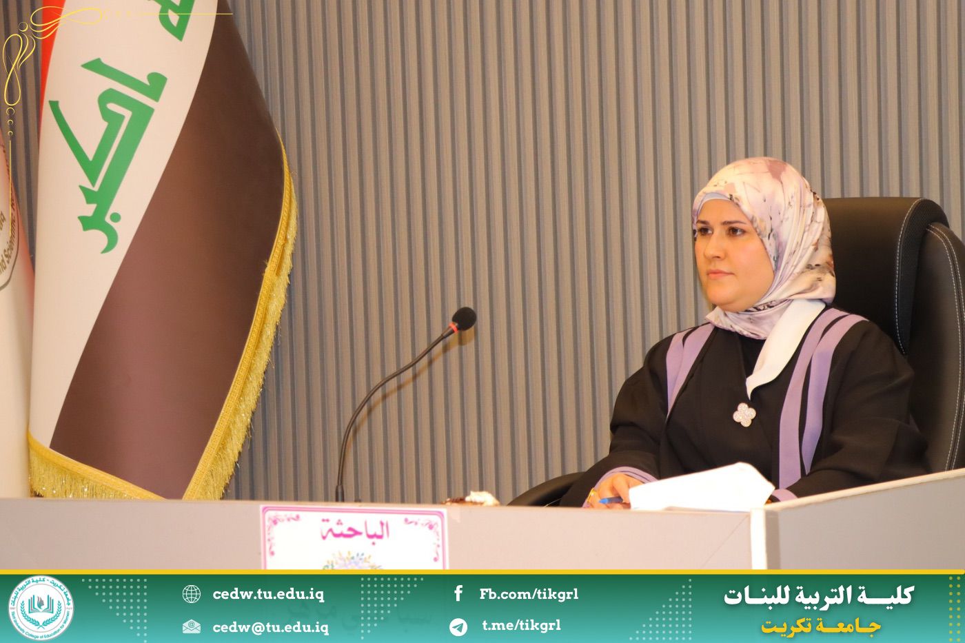 نوقشت في كلية التربية للبنات جامعة تكريت قسم علوم القرآن، اليوم الثلاثاء الموافق ١٥ / ٤ / ٢٠٢٥ ، وعلى رحاب قاعة المرحوم الأستاذ الدكتور جايد زيدان