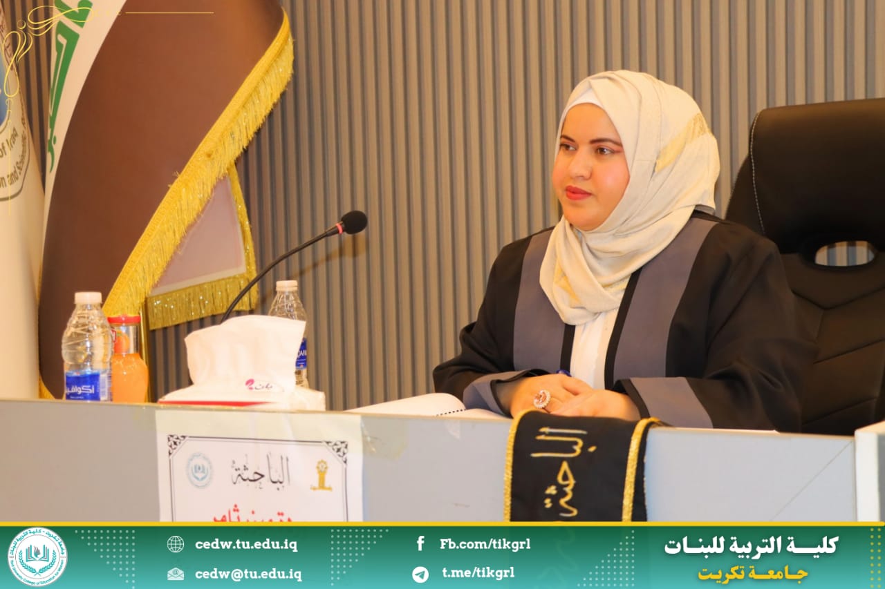 نوقشت في كلية التربية للبنات في جامعة تكريت، قسم اللغة العربية، اليوم الاثنين ١٦ / ٦ / ٢٠٢٥، وعلى رحاب قاعة المرحوم الأستاذ الدكتور جايد زيدان