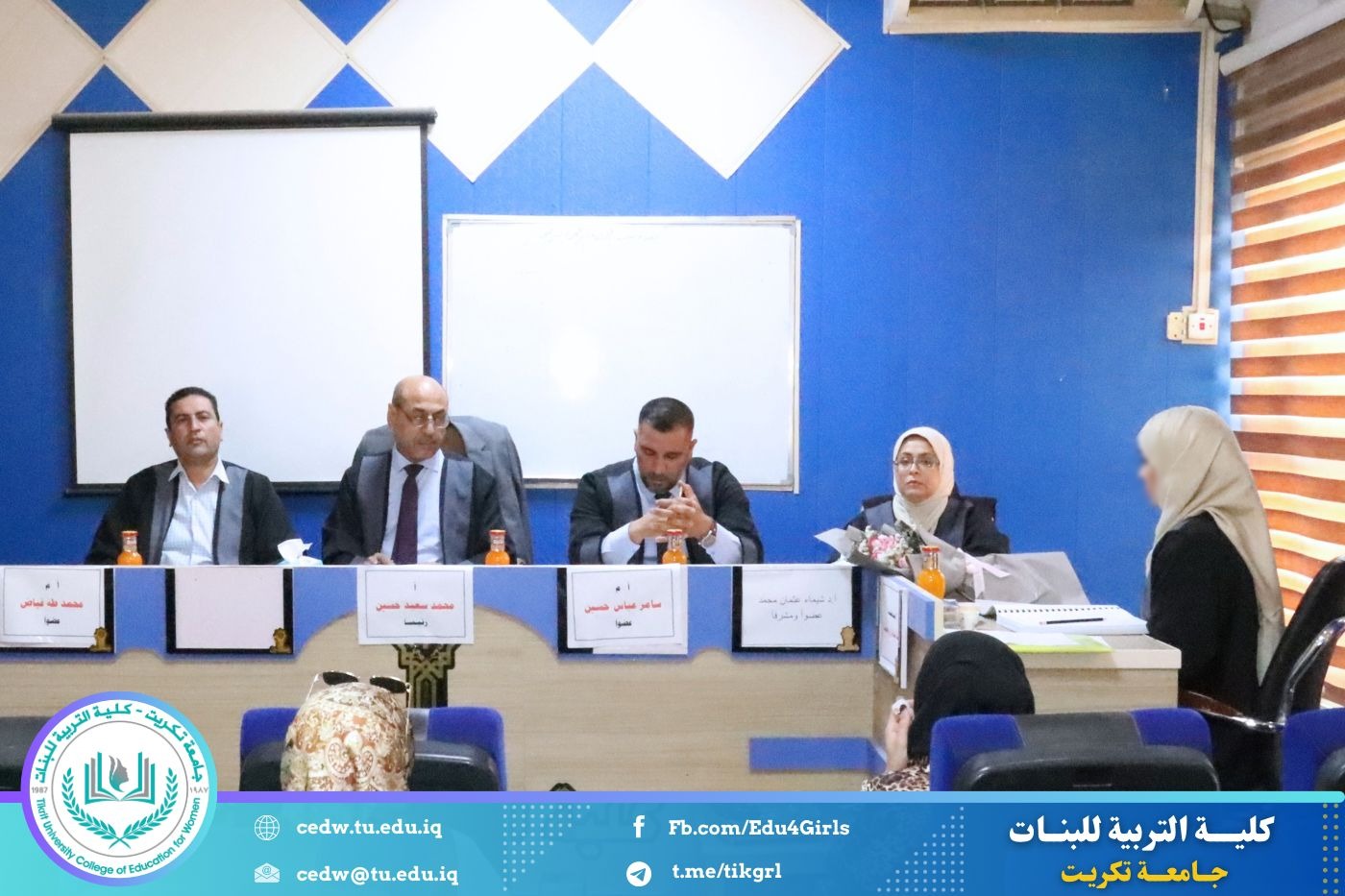 جرت في كلية التربية للبنات – جامعة تكريت/ قسم اللغة العربية، صباح يوم الاثنين الموافق ١ أيلول ٢٠٢٥، مناقشة رسالة الماجستير المقدَّمة من الطالبة (آمنة عبدالرزاق وهيب)، والموسومة:
