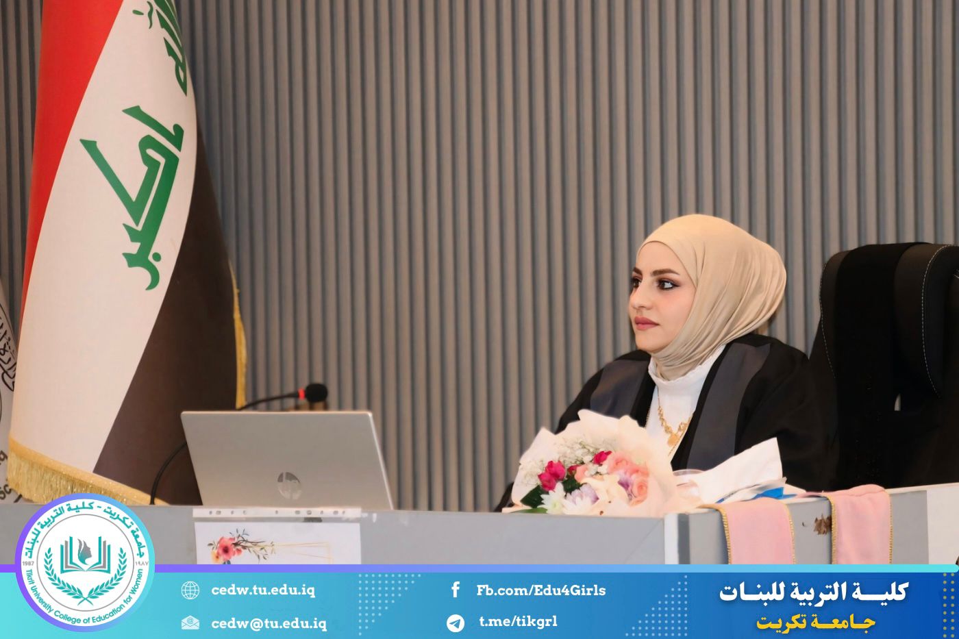 نوقشت في كلية التربية للبنات، قسم اللغة الإنكليزية، اليوم الثلاثاء الموافق 19/ 8/ 2025، على قاعة المرحوم الأستاذ الدكتور جايد زيدان في عمادة الكلية، رسالة الماجستير المقدمة من الطالبة هند سالم داود، والموسومة: