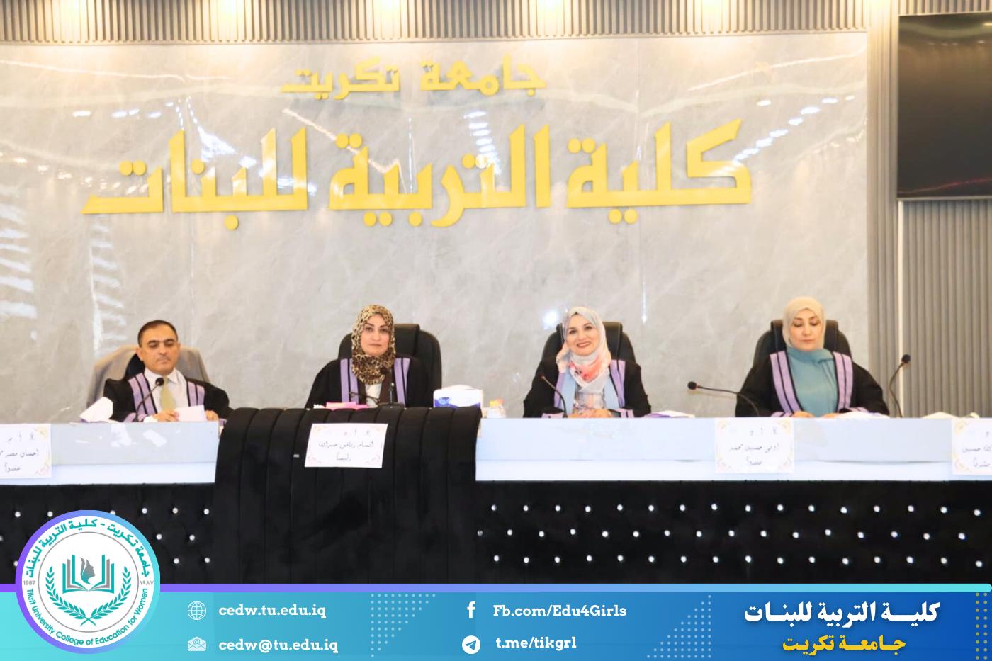 وفي ختام جلسة المناقشة، قررت اللجنة قبول الرسالة ومنح الطالبة آيات عايد مخلف درجة الماجستير في اللغة الإنكليزية، بعد إجراء التعديلات التي أوصت بها اللجنة