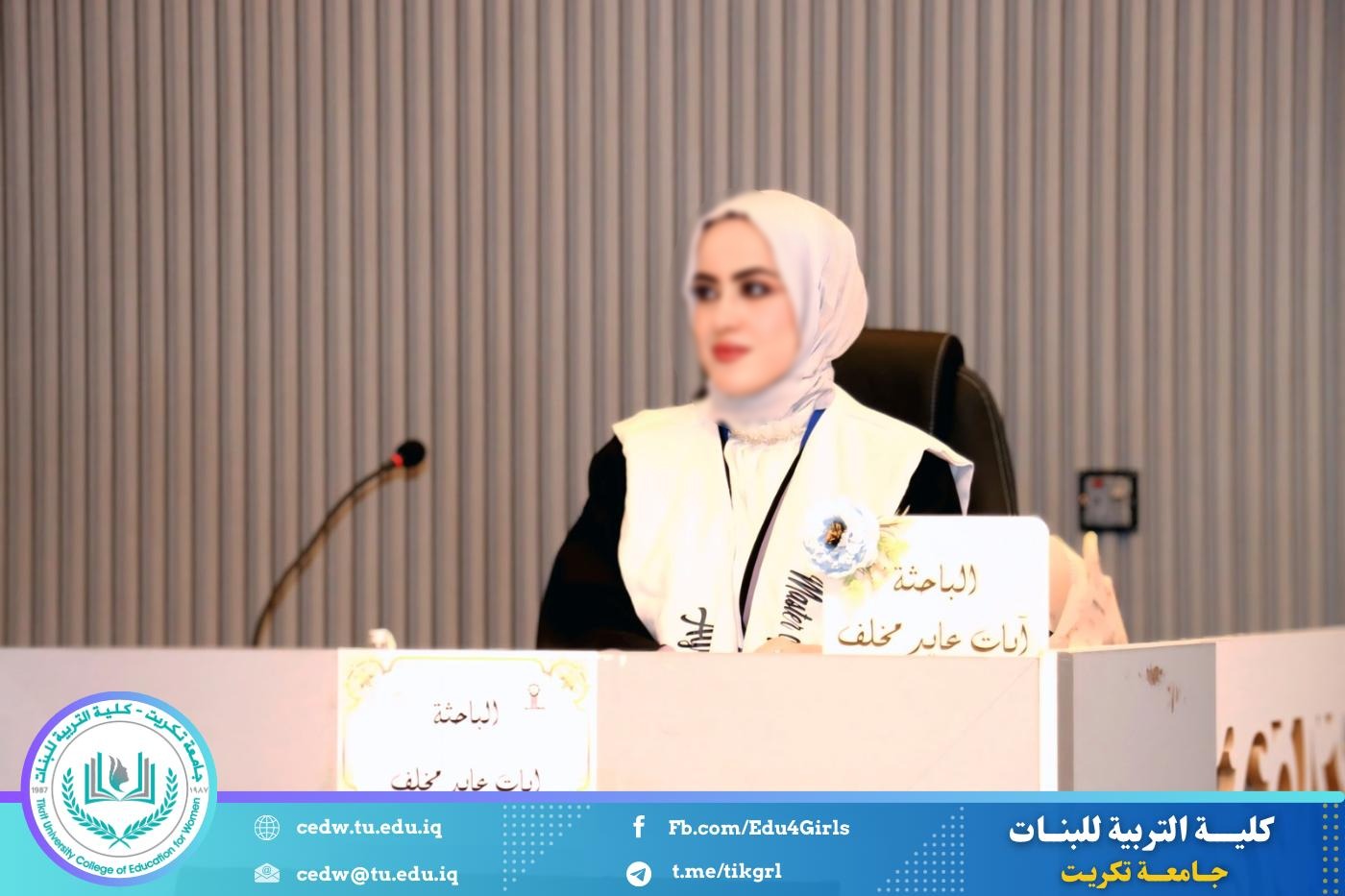 نوقشت في كلية التربية للبنات، قسم اللغة الإنكليزية، اليوم الأربعاء الموافق 20/ 8/ 2025، على قاعة المرحوم الأستاذ الدكتور جايد زيدان في عمادة الكلية، رسالة الماجستير المقدمة من الطالبة آيات عايد مخلف، والموسومة: