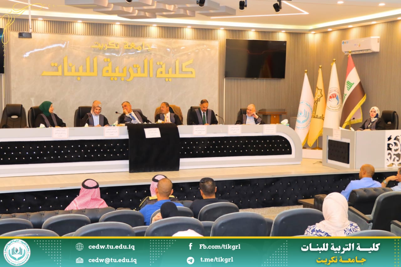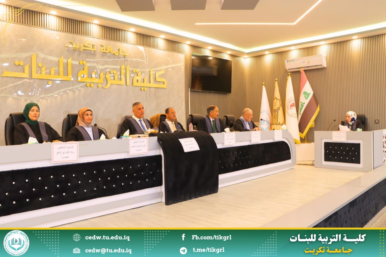 وقد حضر المناقشة السيد اسماعيل الهلوب عضو مجلس محافظة صلاح الدين والاستاذ الدكتورة نجلاء عبدالحسين عليوي عميد كلية التربية للبنات وعدد من السادة التدريسيين.
