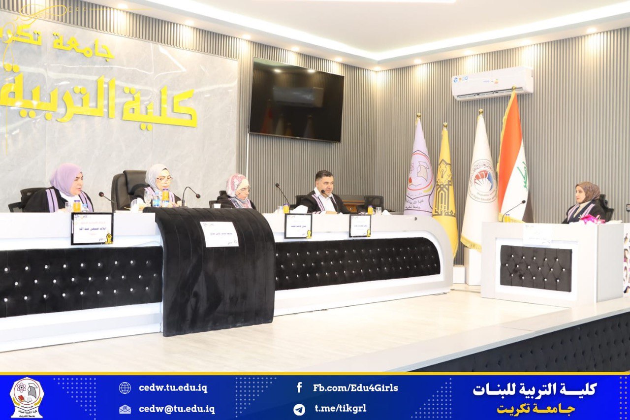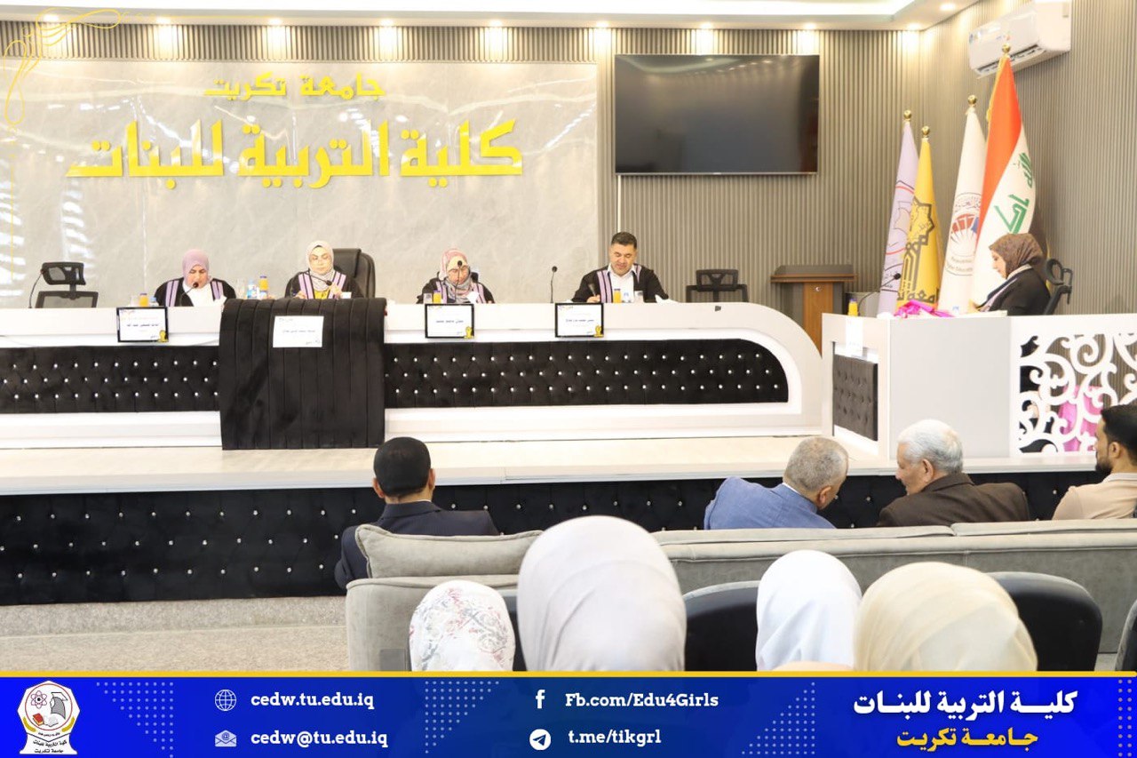 نوقشت في كلية التربية للبنات جامعة تكريت قسم اللغة الإنكليزية يوم الاربعاء الموافق ٢٠٢٤/١٠/٢٣