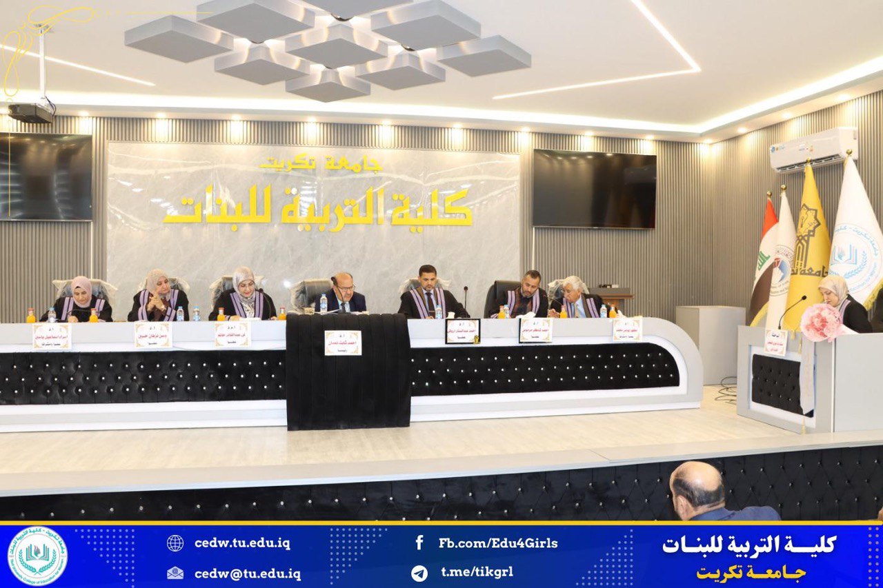 نوقشت في كلية التربية للبنات جامعة تكريت قسم الكيمياء يوم الخميس الموافق ٧ / ١١ / ٢٠٢٤