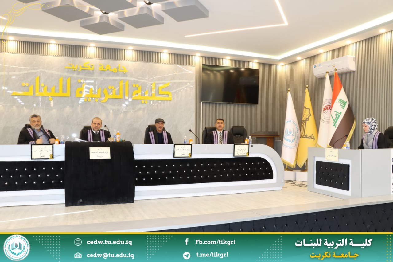 نوقشت في كلية التربية للبنات جامعة تكريت قسم علوم القرآن يوم الخميس الموافق ١٩ / ١٢ / ٢٠٢٤