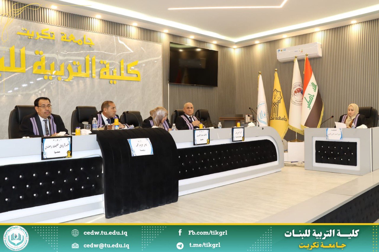 نوقشت في كلية التربية للبنات جامعة تكريت قسم التاريخ يوم الاحد الموافق 22 / 12 / 2024