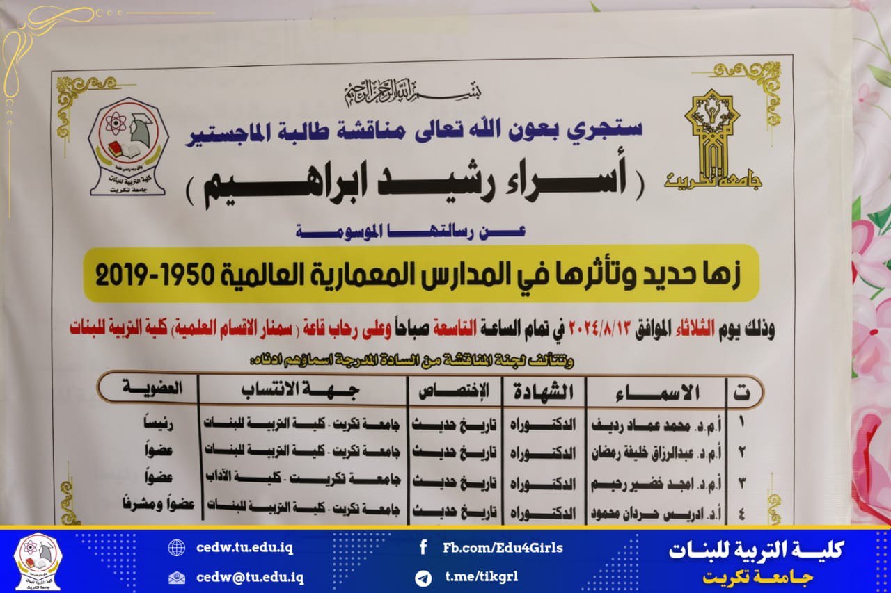 وقد أوصت اللجنة بمنح الدرجة المطلوبة للطالبة