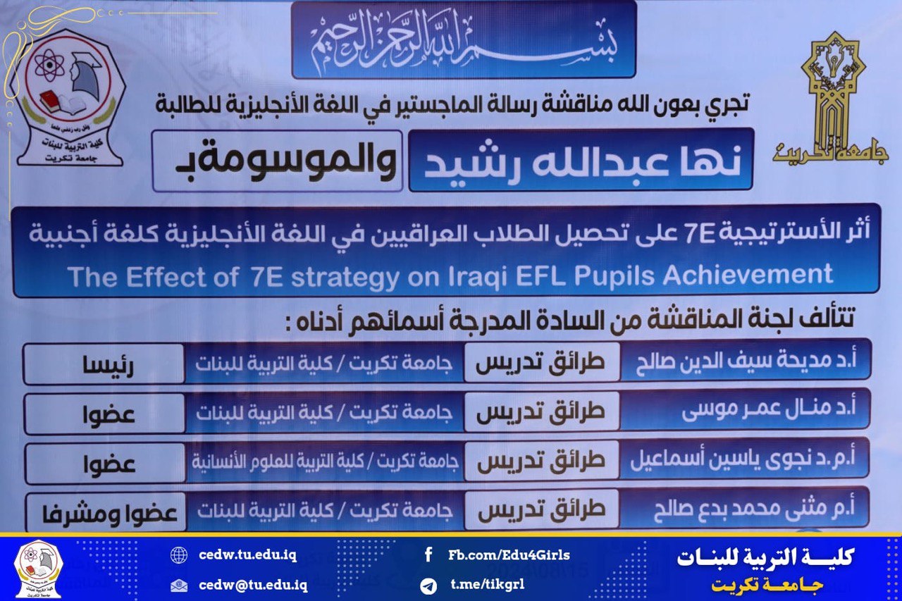 نوقشت في كلية التربية للبنات قسم اللغة الانكليزية