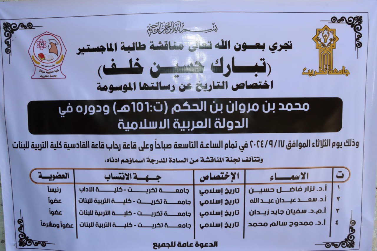 نوقشت في كلية التربية للبنات قسم التاريخ