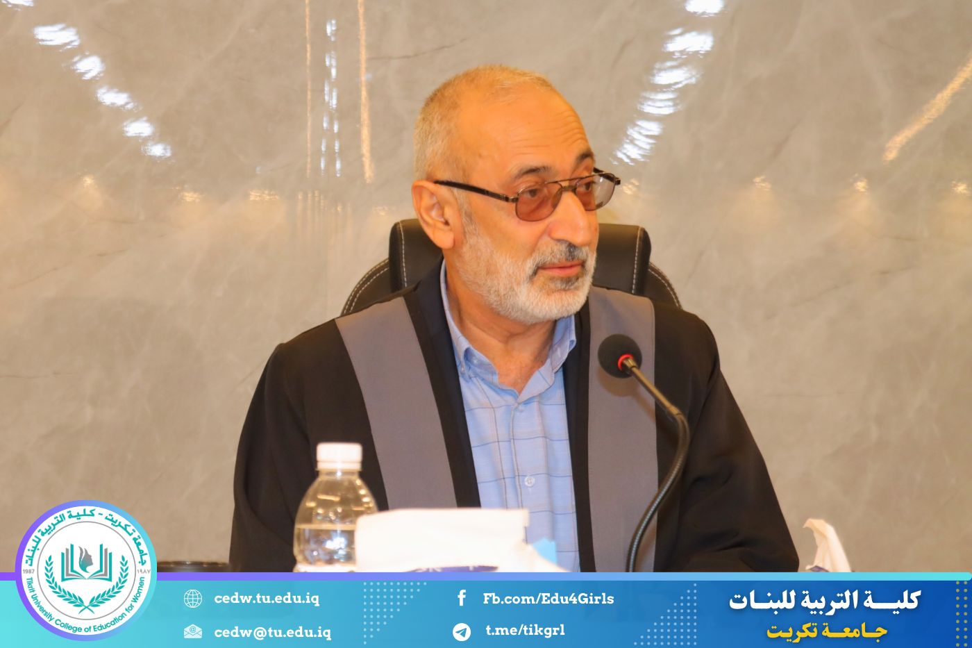 نوقشت في كلية التربية للبنات – قسم اللغة العربية بجامعة تكريت، يوم الأحد الموافق ٢٦ / ١٠ / ٢٠٢٥، على قاعة المرحوم الأستاذ الدكتور جايد زيدان في عمادة الكلية، رسالة الماجستير المقدَّمة من الطالبة (إسراء يوسف عبد ربه)، والموسومة:
