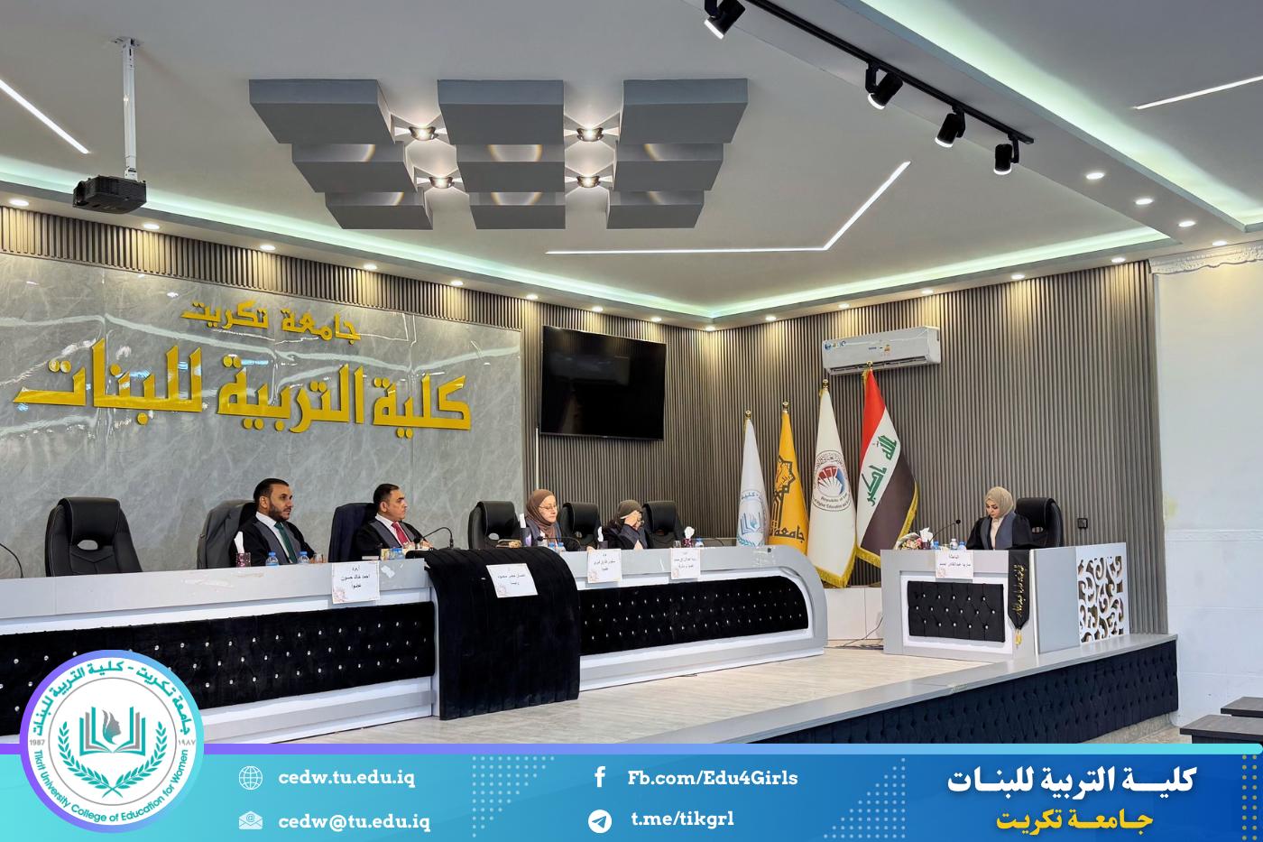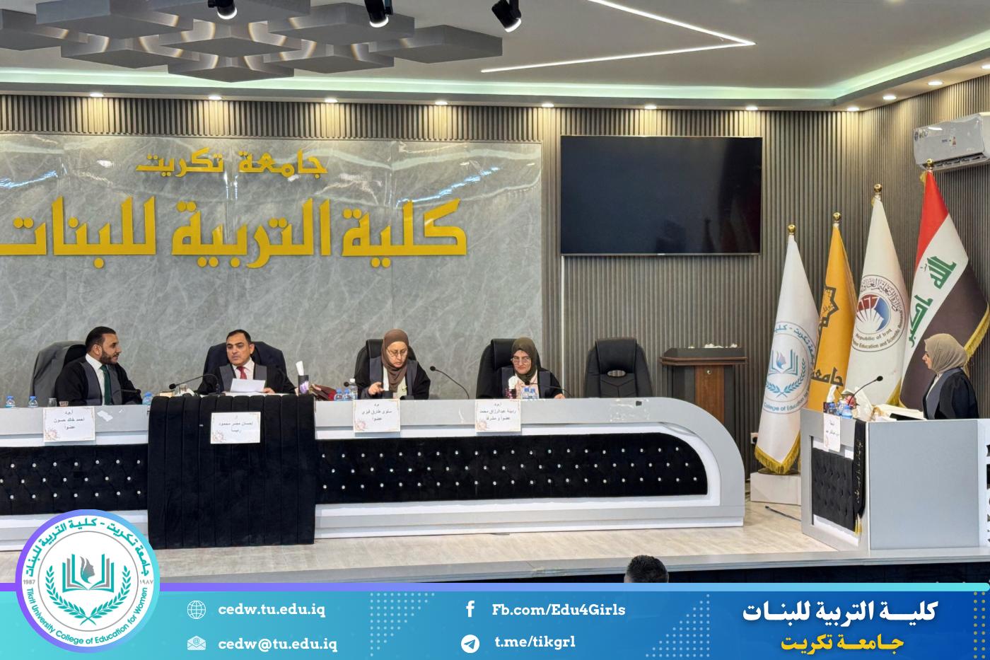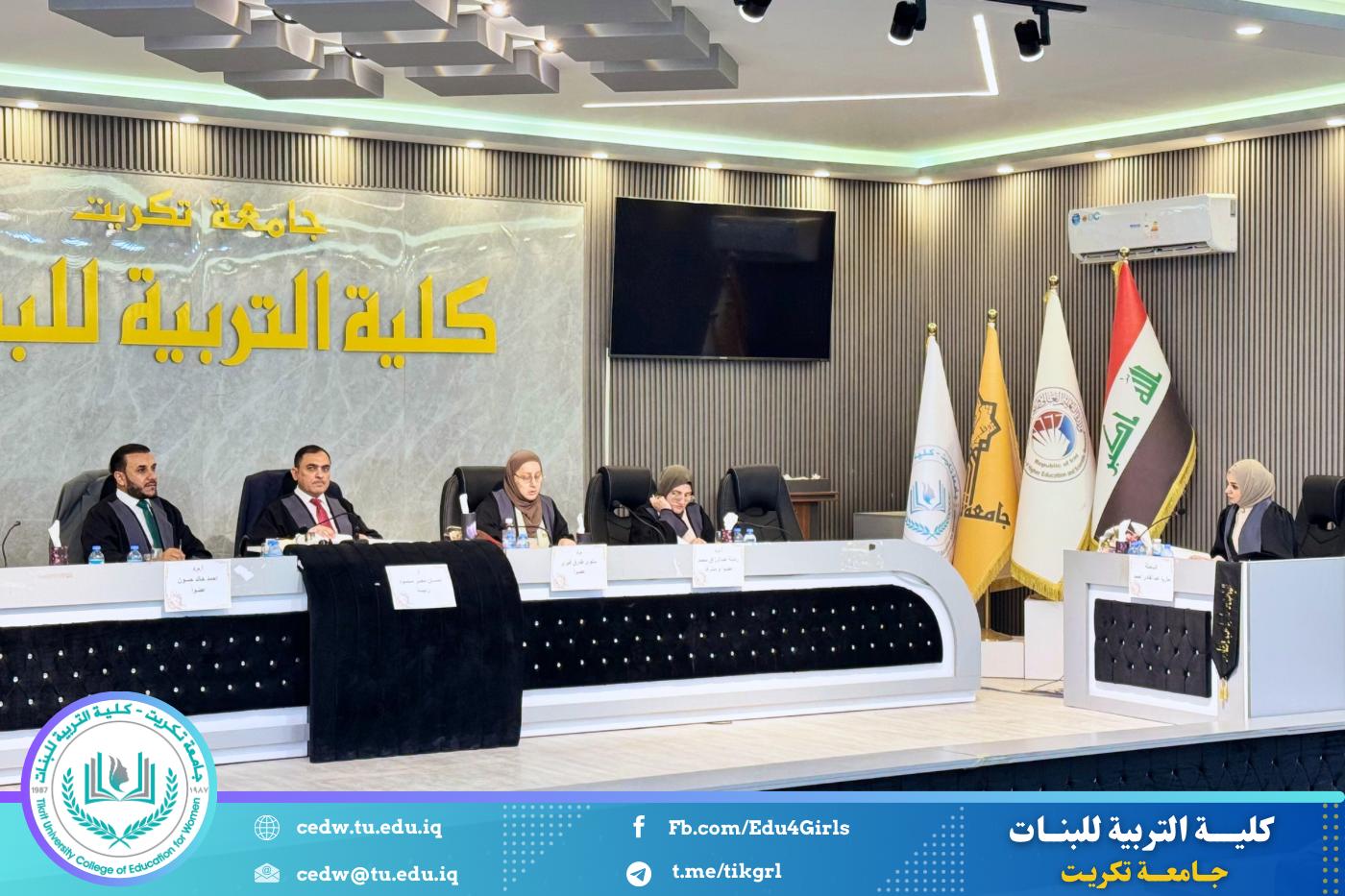 نوقشت في كلية التربية للبنات – قسم اللغة الإنكليزية، اليوم الثلاثاء الموافق 26 / 8 / 2025، على قاعة المرحوم الأستاذ الدكتور جايد زيدان في عمادة الكلية، رسالة الماجستير المقدمة من الطالبة ماريا عبدالقادر أحمد، والموسومة: