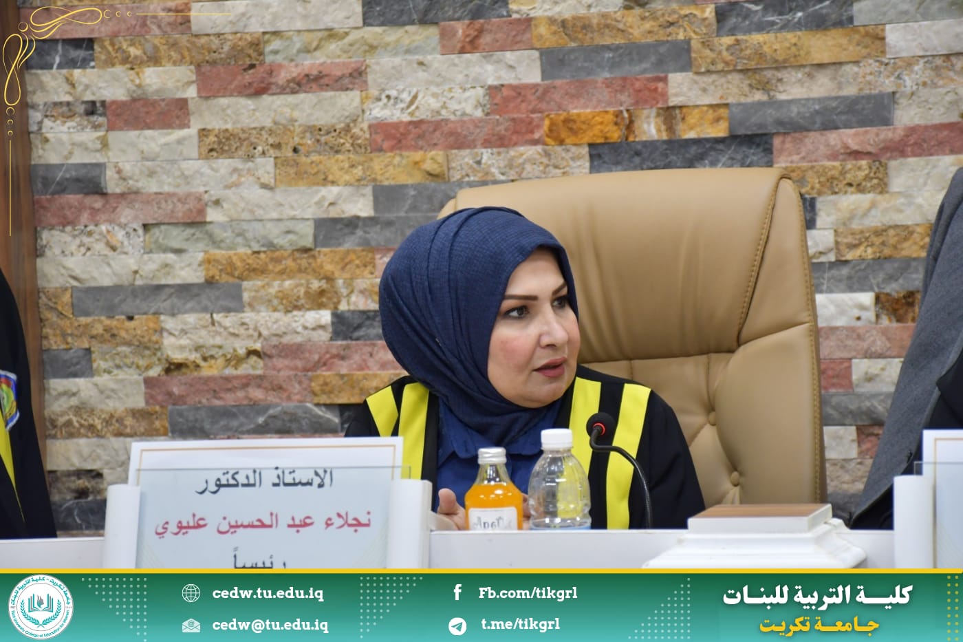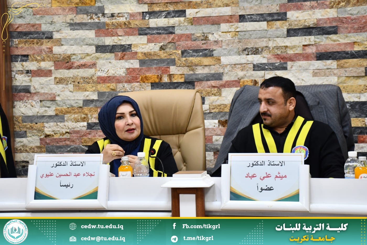 ترأست الأستاذ الدكتورة نجلاء عبدالحسين عليوي عميد كلية التربية للبنات / جامعة تكريت ، لجنة مناقشة رسالة ماجستير خارجية للطالب (ناصر خضر خلف الكربولي)، في كلية التربية للعلوم الانسانية - قسم اللغة العربية والموسومة (الثنائيَّات الضِديَّة في شعر الطغرائي (ت: ٥٢٣هـ)، والتي نوقشت صباح اليوم الموافق٢٧ نيسان ٢٠٢٥