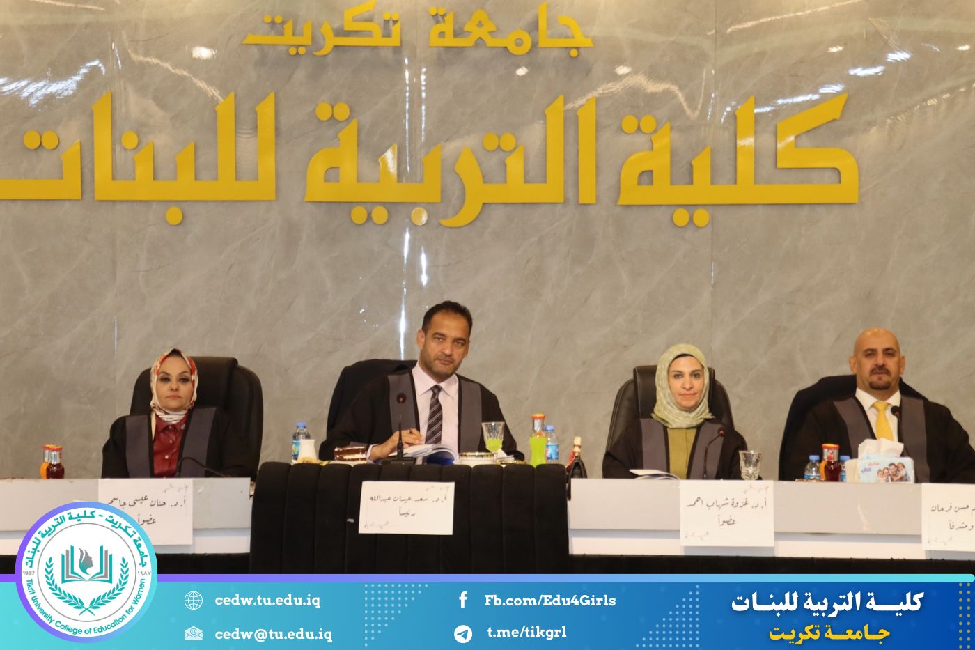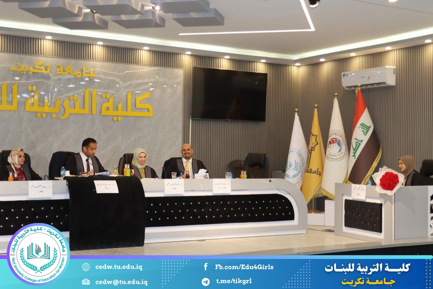 نوقشت في كلية التربية للبنات – قسم التاريخ، اليوم الخميس الموافق 28 / 8 / 2025، على قاعة المرحوم الأستاذ الدكتور جايد زيدان في عمادة الكلية، رسالة الماجستير المقدمة من الطالبة فاطمة محمود محمد النعيمي، والموسومة: