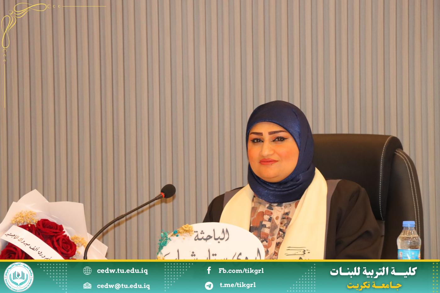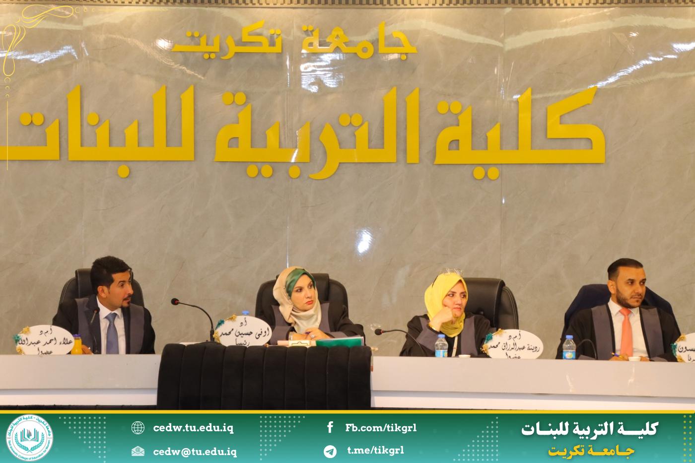 نوقشت في كلية التربية للبنات /جامعة تكريت - قسم اللغة الإنكليزية اليوم الأربعاء الموافق ٣٠ / ٤ / ٢٠٢٥، وعلى رحاب قاعة المرحوم الأستاذ الدكتور جايد زيدان