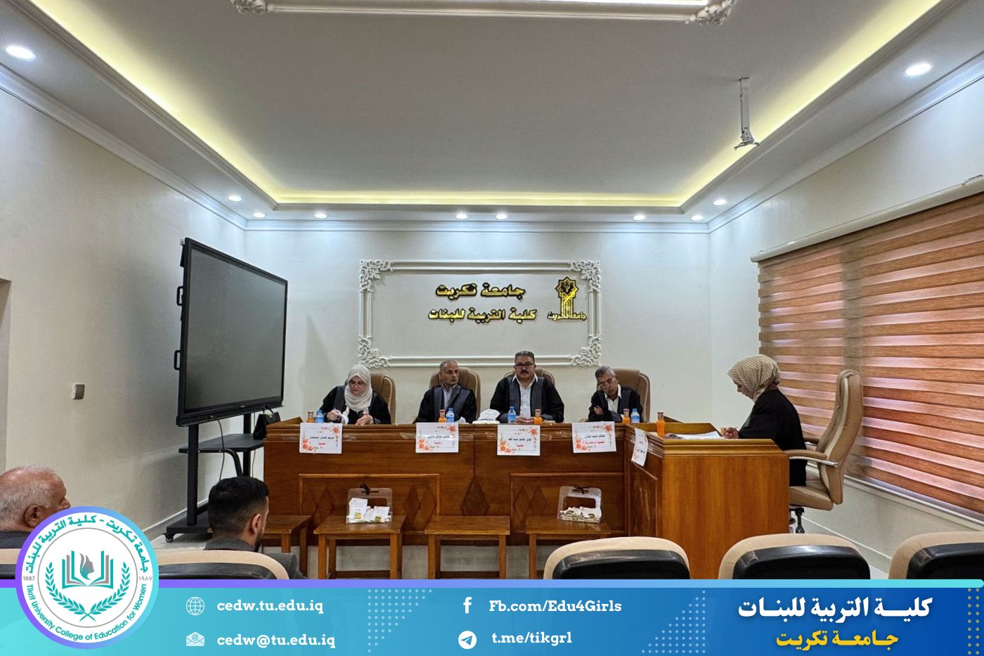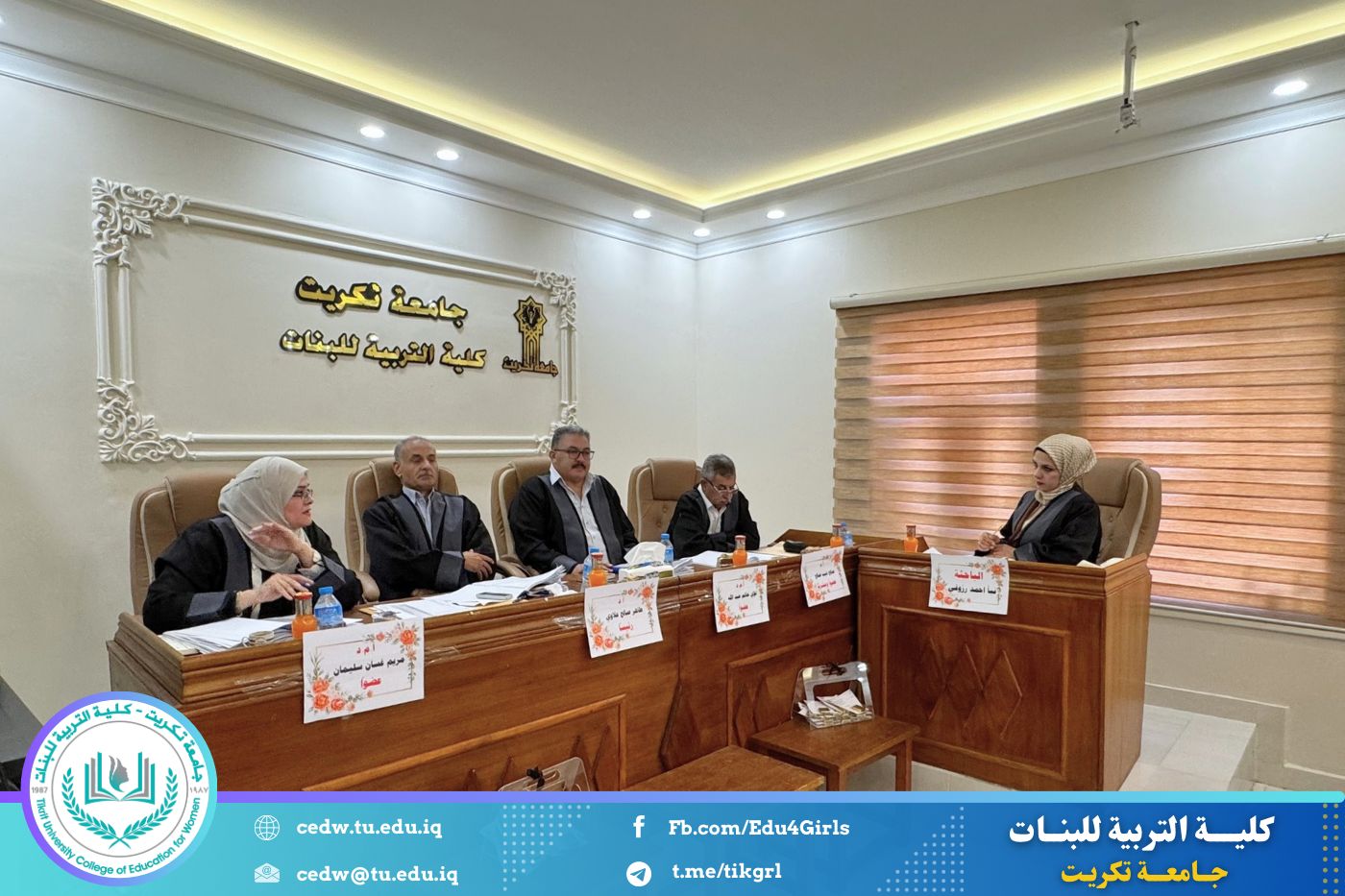 نوقشت في كلية التربية للبنات – قسم اللغة العربية، اليوم الأحد الموافق 31 / 8 / 2025، على قاعة السمنار في الأقسام العلمية، رسالة الماجستير المقدمة من الطالبة نبأ أحمد رزوقي، والموسومة: