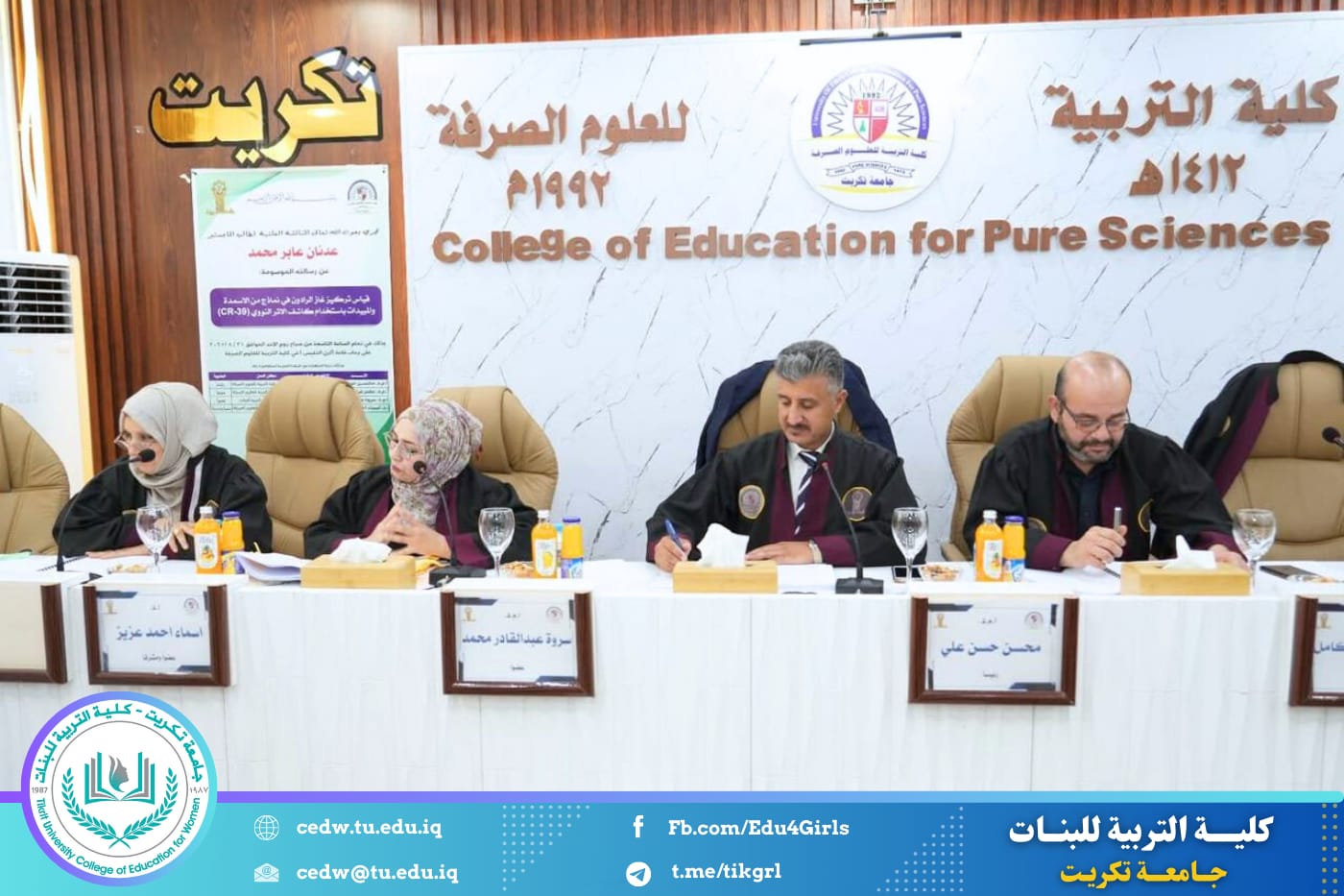 شاركت الأستاذ المساعد الدكتورة سروة عبدالقادر محمد، التدريسية في قسم الرياضيات بكلية التربية للبنات – جامعة تكريت، في عضوية لجنة مناقشة خارجية لرسالة ماجستير مقدَّمة من الطالب (عدنان عابر محمد) في قسم الفيزياء بكلية التربية للعلوم الصرفة – جامعة تكريت، والموسومة: