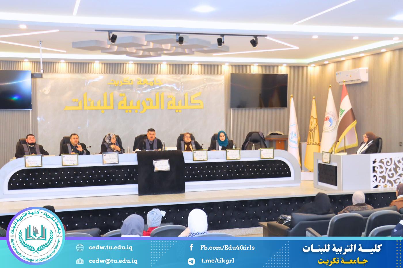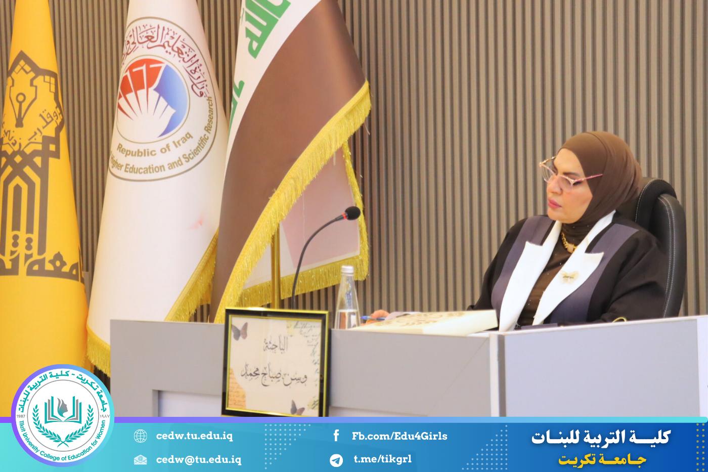 نوقشت في كلية التربية للبنات – قسم علوم الحياة، يوم الثلاثاء الموافق 3 / 2 / 2026، وعلى قاعة المرحوم الأستاذ الدكتور جايد زيدان في عمادة الكلية، أطروحة الدكتوراه المقدّمة من الطالبة وسن صباح محمد، والموسومة: