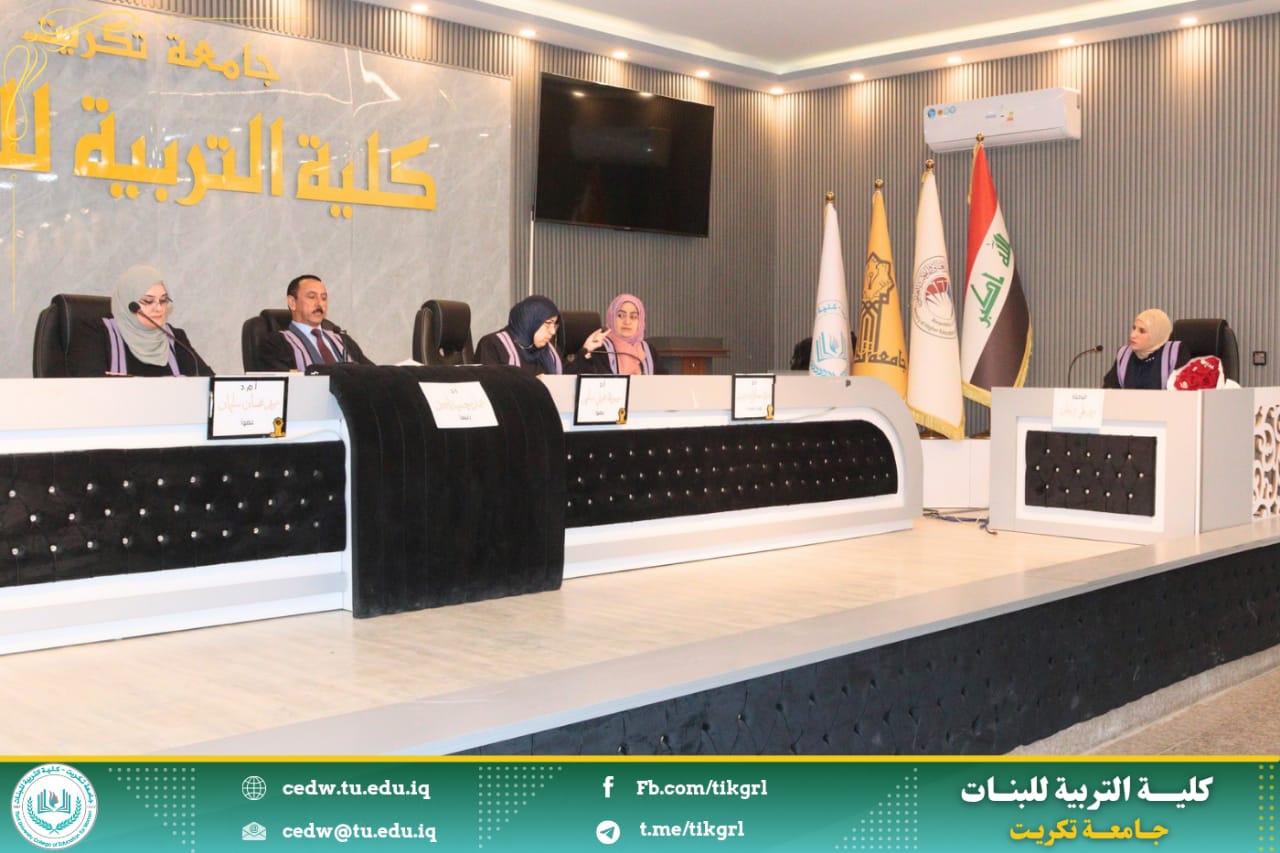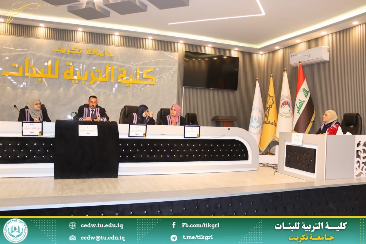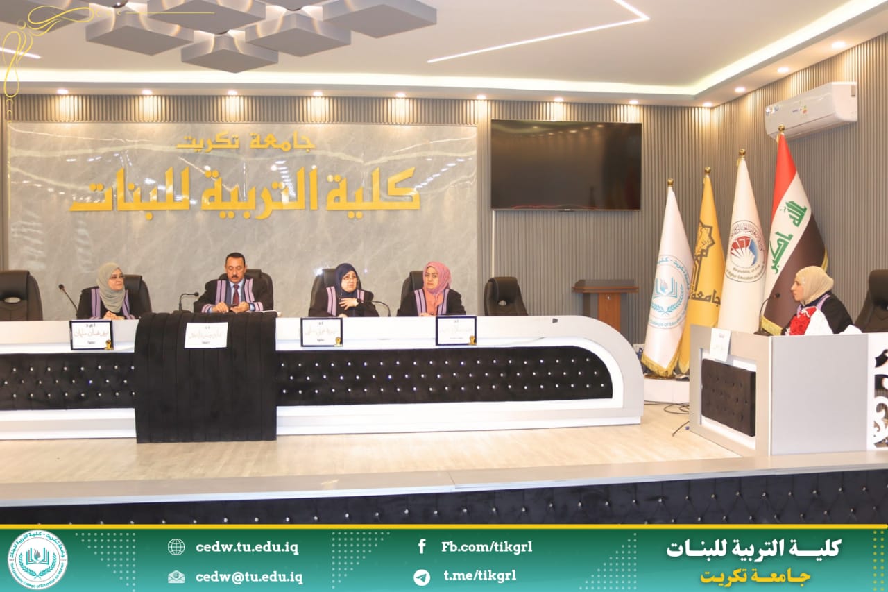 نوقشت في كلية التربية للبنات /جامعة تكريت - قسم اللغة العربية اليوم الثلاثاء الموافق ٤ / ٣ / ٢٠٢٥ ، وعلى رحاب قاعة المرحوم الأستاذ الدكتور جايد زيدان