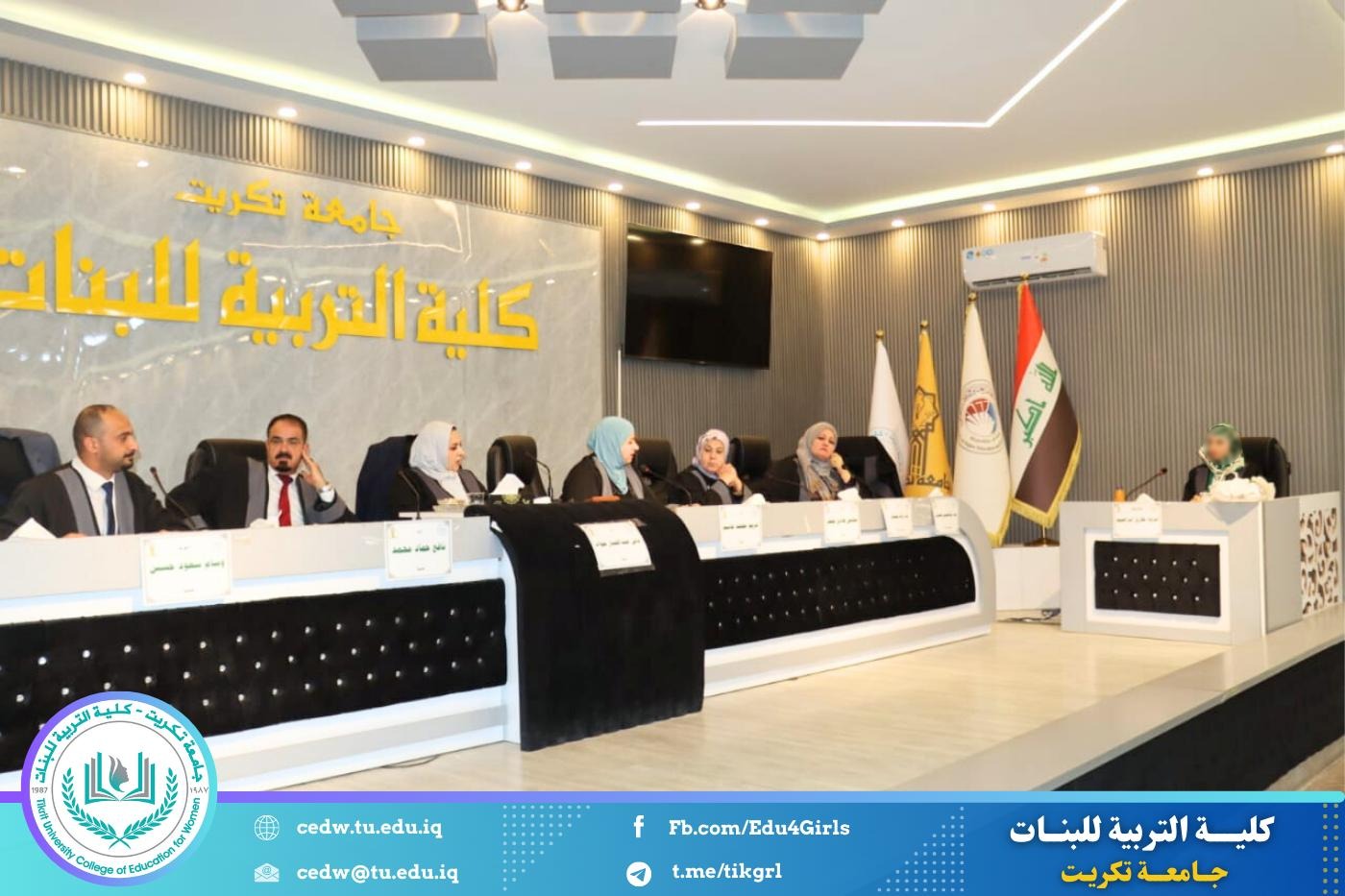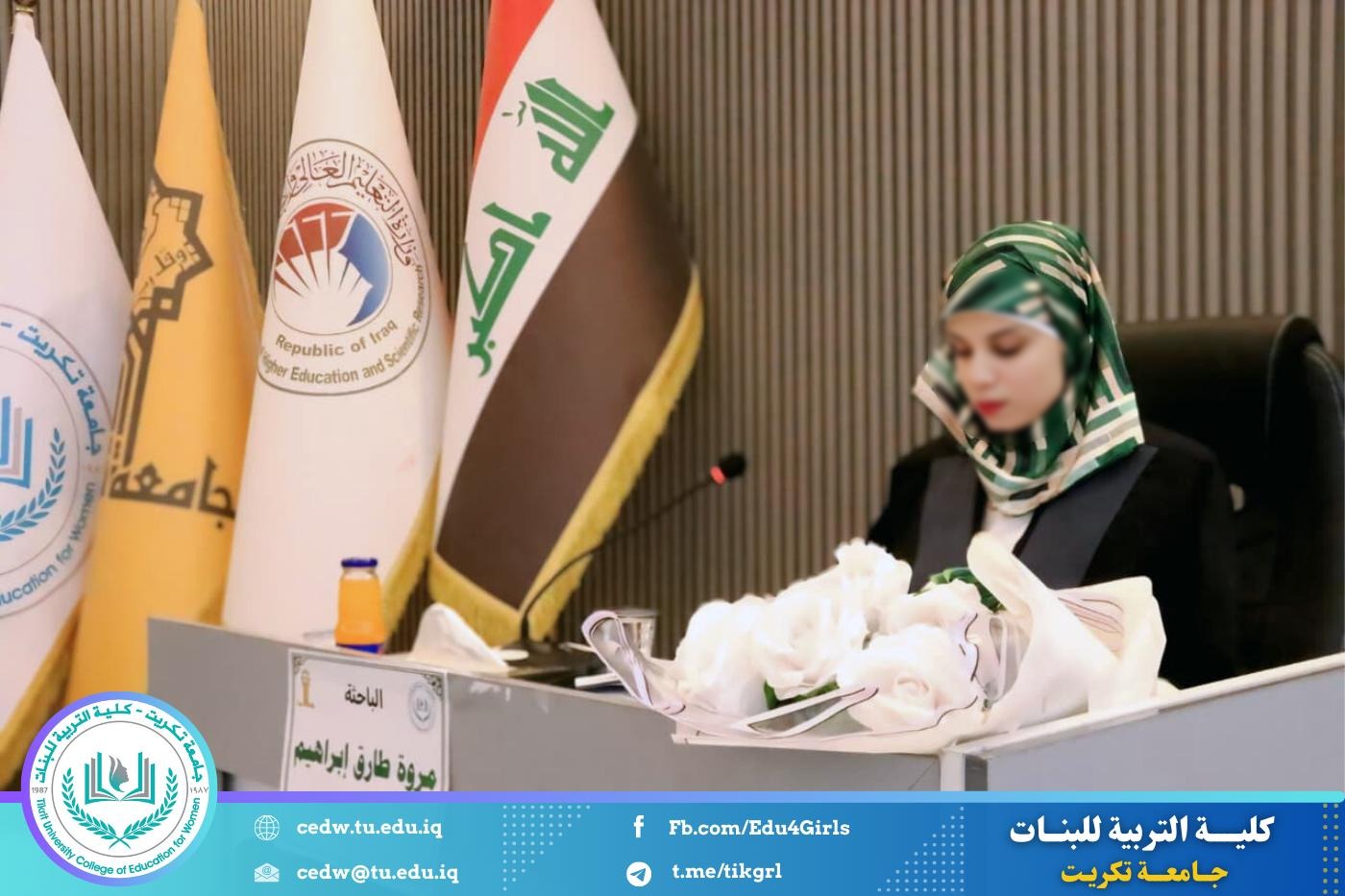 نوقشت في كلية التربية للبنات – قسم اللغة العربية، اليوم الأربعاء الموافق 3 / 9 / 2025، على قاعة المرحوم الأستاذ الدكتور جايد زيدان في عمادة الكلية، أطروحة الدكتوراه المقدمة من الطالبة مروة طارق إبراهيم، والموسومة: