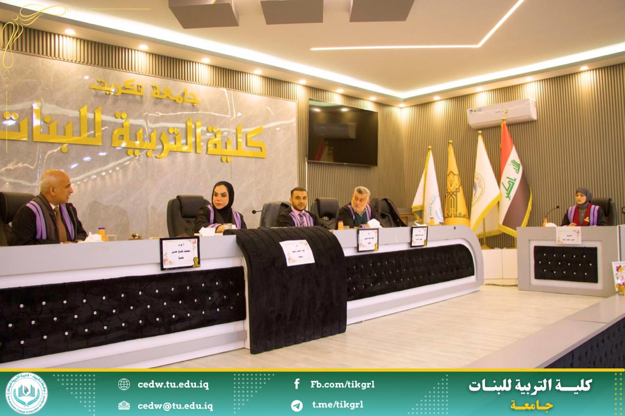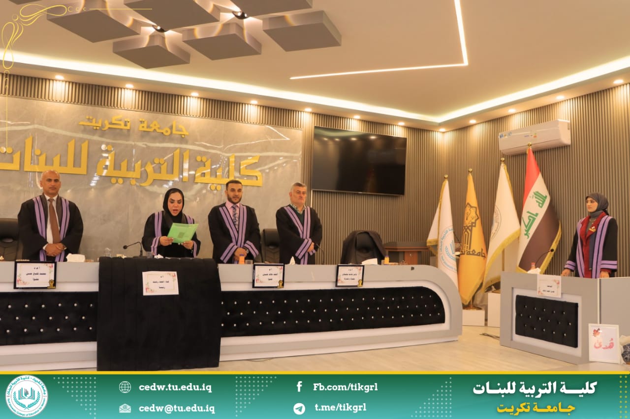 نوقشت في كلية التربية للبنات جامعة تكريت قسم اللغة الإنكليزية، اليوم الخميس الموافق ٢٠ / ٢ / ٢٠٢٥ ، وعلى رحاب قاعة المرحوم الأستاذ الدكتور جايد زيدان