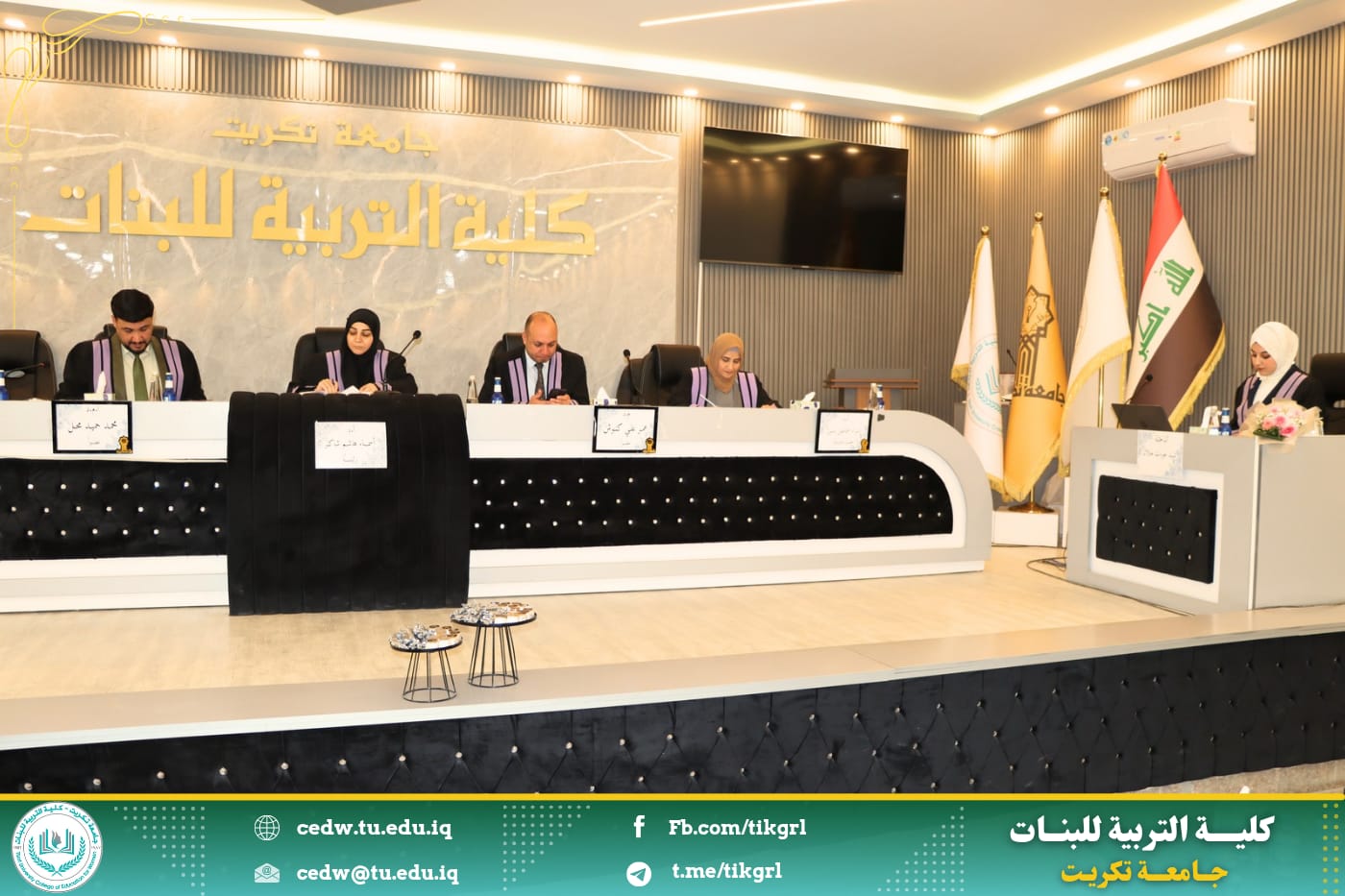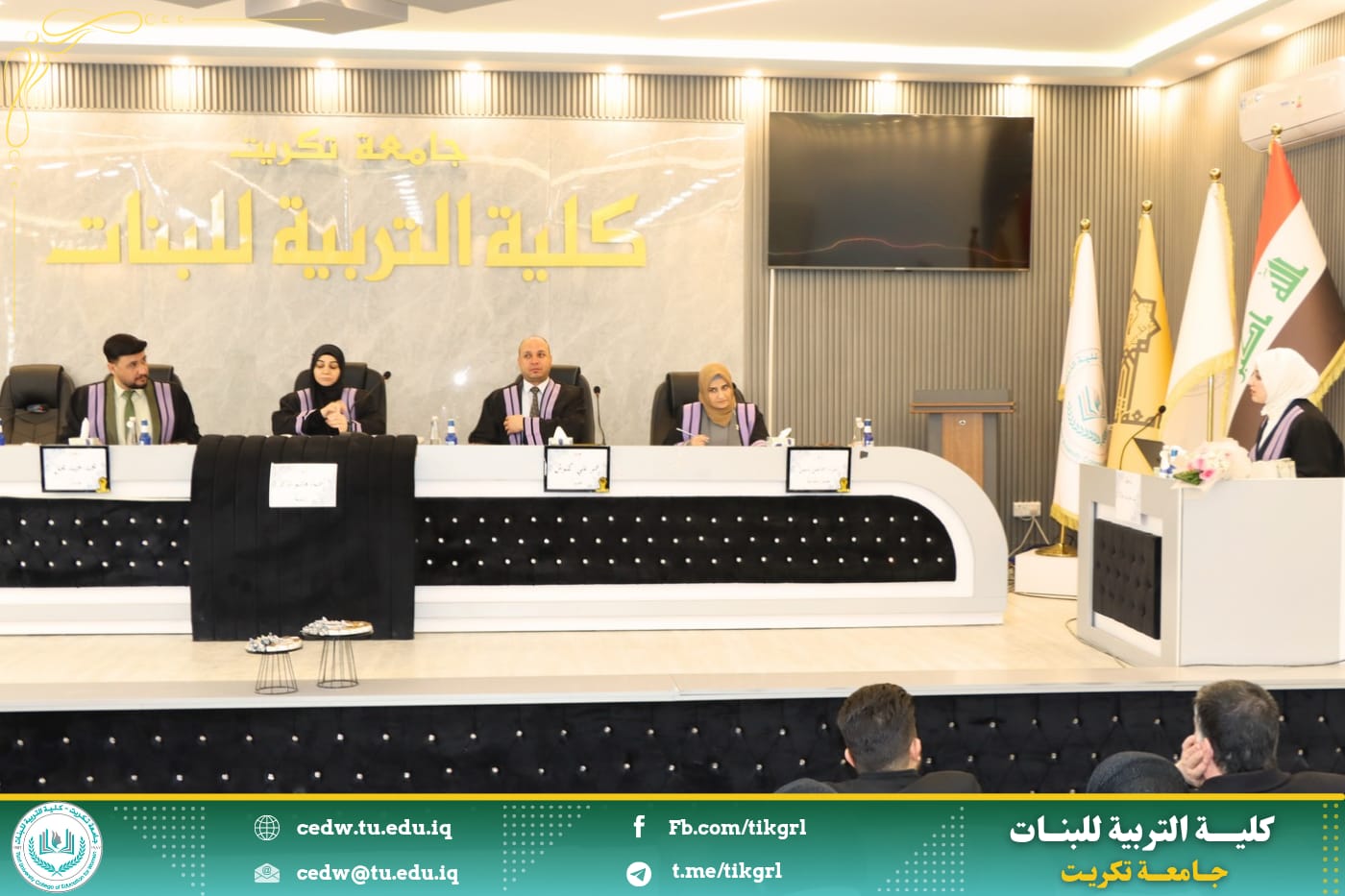 نوقشت في كلية التربية للبنات جامعة تكريت قسم الكيمياء ، اليوم الثلاثاء الموافق ٢٥ / ٢ / ٢٠٢٥ ، وعلى رحاب قاعة المرحوم الأستاذ الدكتور جايد زيدان