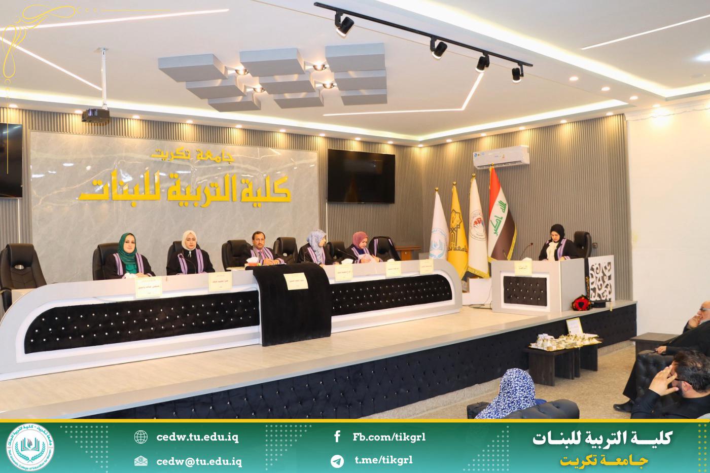 نوقشت في كلية التربية للبنات جامعة تكريت قسم علوم الحياة ، اليوم الاحد الموافق ١٦ / ٣ / ٢٠٢٥ ، وعلى رحاب قاعة المرحوم الأستاذ الدكتور جايد زيدان