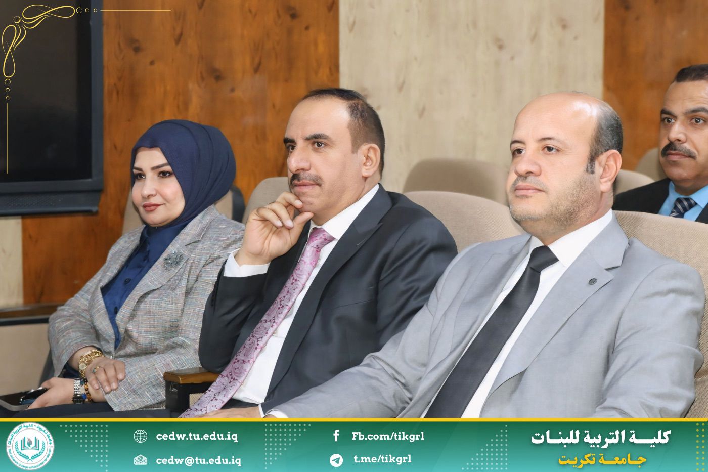 بحضور الأستاذ الدكتور وعد محمود رؤوف رئيس جامعة تكريت، والأستاذ الدكتورة نجلاء عبدالحسين عليوي عميد كلية التربية للبنات، الأستاذ اسماعيل الهلوب عضو مجلس محافظة صلاح الدين