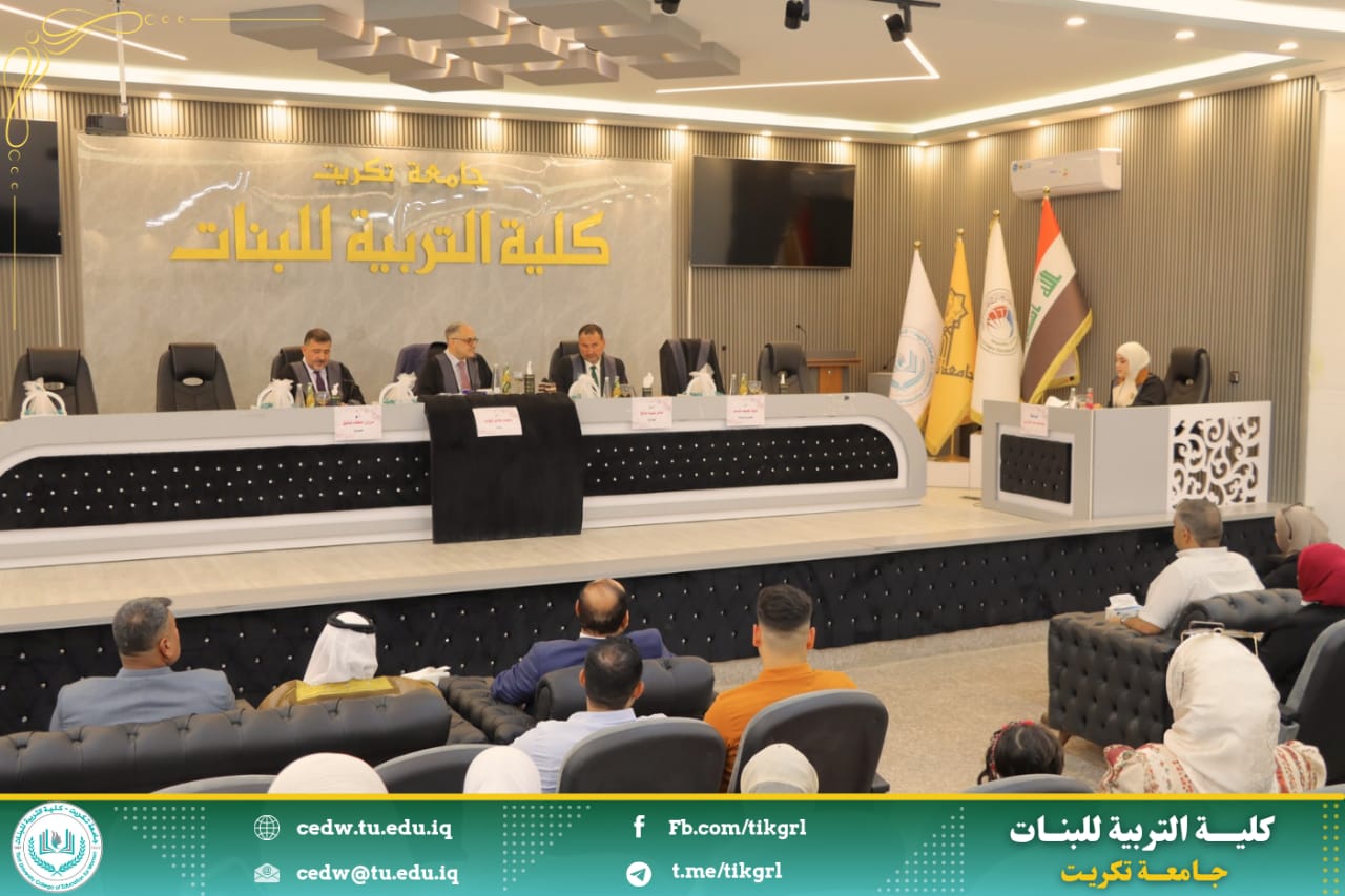 نوقشت في كلية التربية للبنات /جامعة تكريت - قسم علوم القرآن اليوم الأحد الموافق ١ / ٦ / ٢٠٢٥، وعلى رحاب قاعة المرحوم الأستاذ الدكتور جايد زيدان