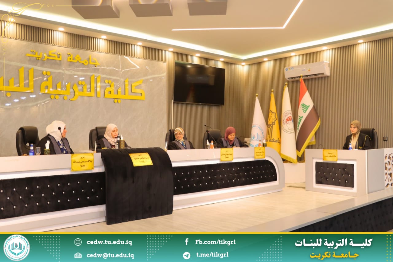نوقشت صباح يوم الأربعاء الموافق 4 / 6 / 2025، على قاعة المرحوم الأستاذ الدكتور جايد زيدان في عمادة كلية التربية للبنات – جامعة تكريت، رسالة الماجستير المقدّمة من الطالبة هالة تركي حميد من قسم اللغة الإنجليزية، والموسومة: