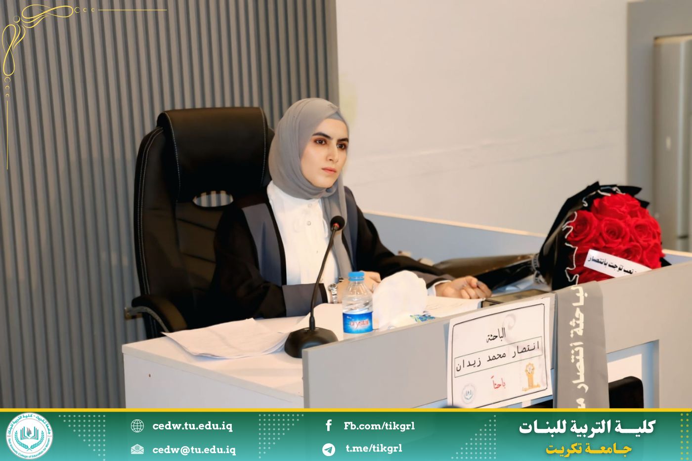 نوقشت في كلية التربية للبنات ، قسم اللغة العربية، يوم الاثنين الموافق 21 / 7 / 2025، وعلى قاعة المرحوم الأستاذ الدكتور جايد زيدان، رسالة ماجستير للطالبة انتصار محمد زيدان، والموسومة: