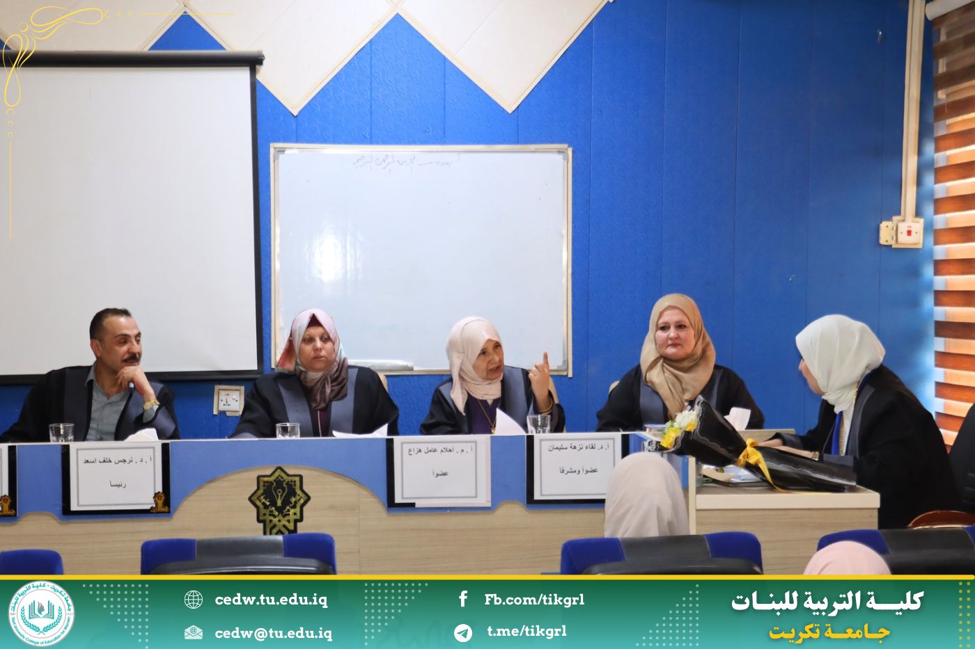 وفي ختام جلسة المناقشة، قررت اللجنة قبول الرسالة ومنح الطالبة سجى خالد علي درجة الماجستير في اللغة العربية، بعد إجراء التعديلات التي أوصت بها اللجنة