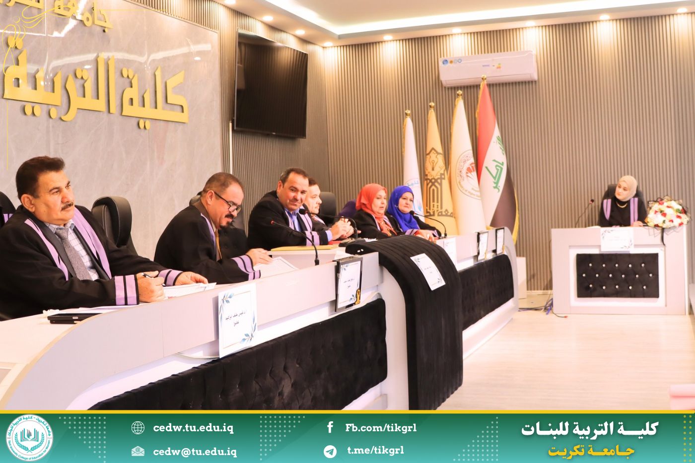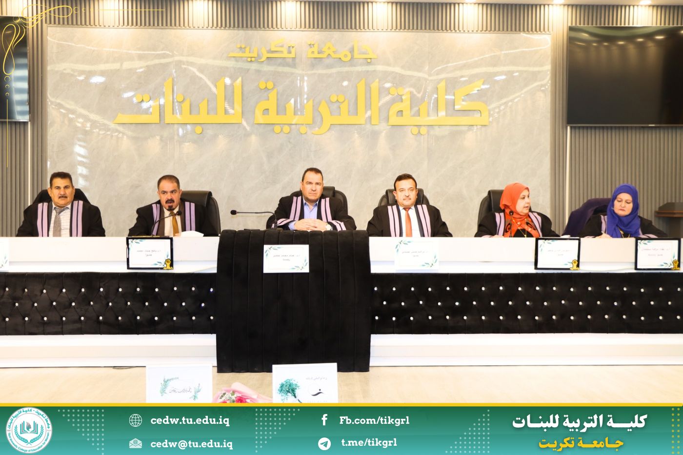 نوقشت في كلية التربية للبنات جامعة تكريت قسم اللغة العربية، اليوم الخميس الموافق ٦ / ٣ / ٢٠٢٥ ، وعلى رحاب قاعة المرحوم الأستاذ الدكتور جايد زيدان