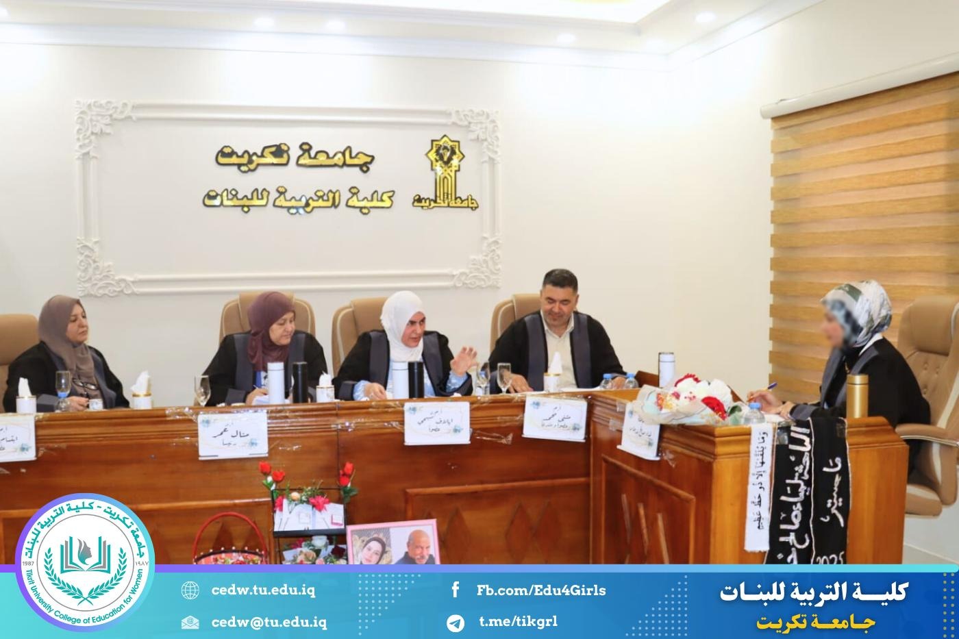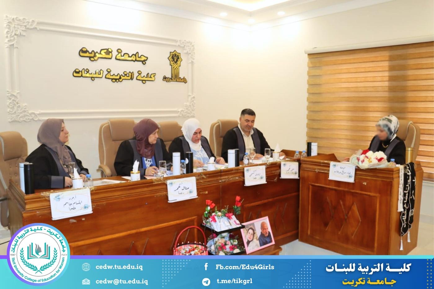 نوقشت في كلية التربية للبنات – قسم اللغة الإنجليزية، يوم السبت الموافق 6/ 9 / 2025، على قاعة السمنار في الأقسام العلمية للكلية، رسالة الماجستير المقدمة من الطالبة لمياء صالح خطاب، والموسومة: