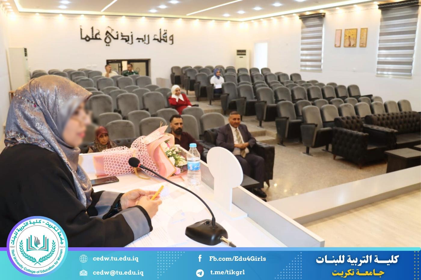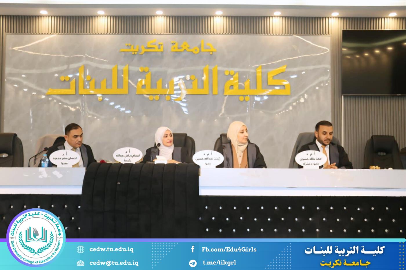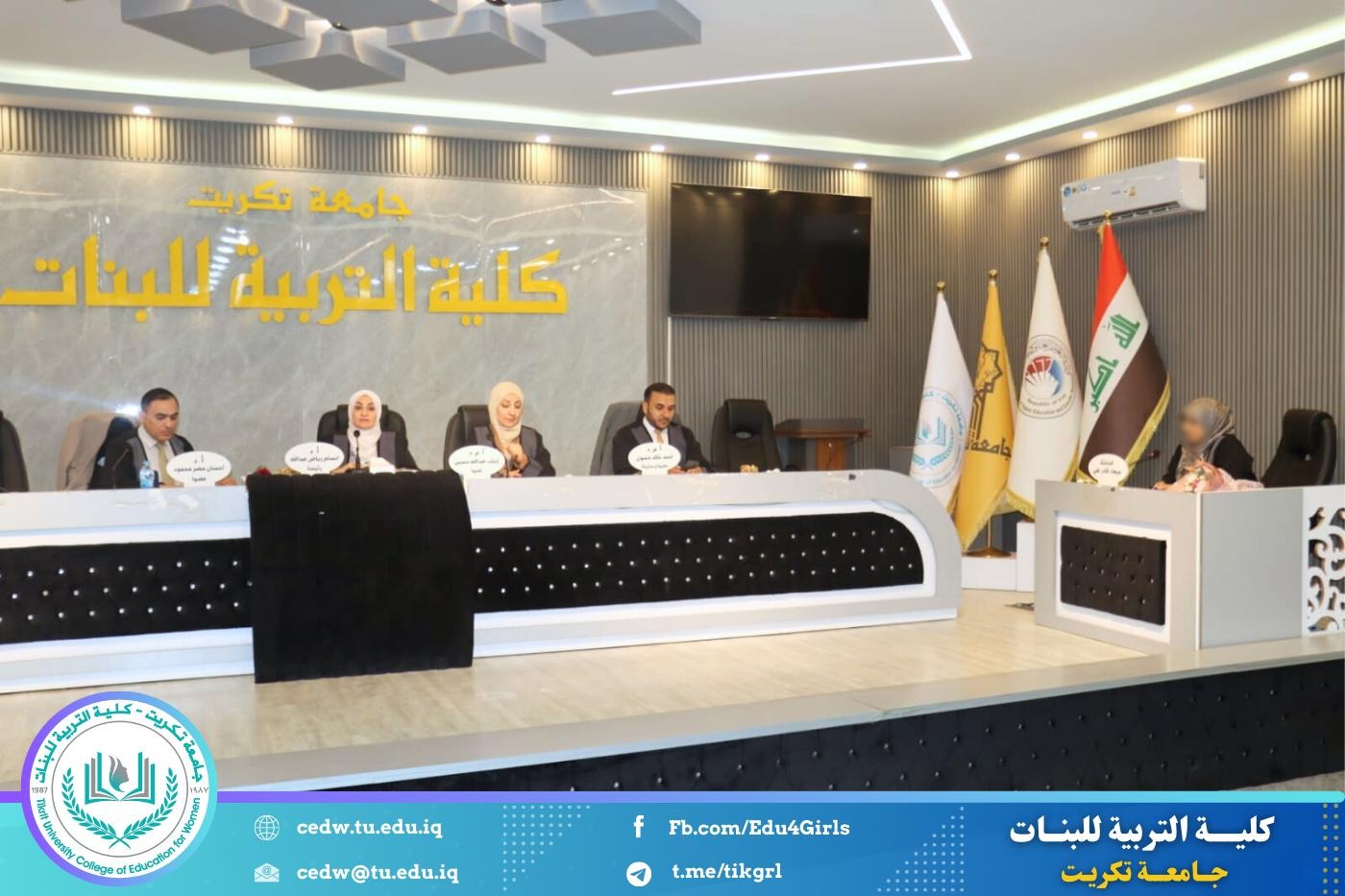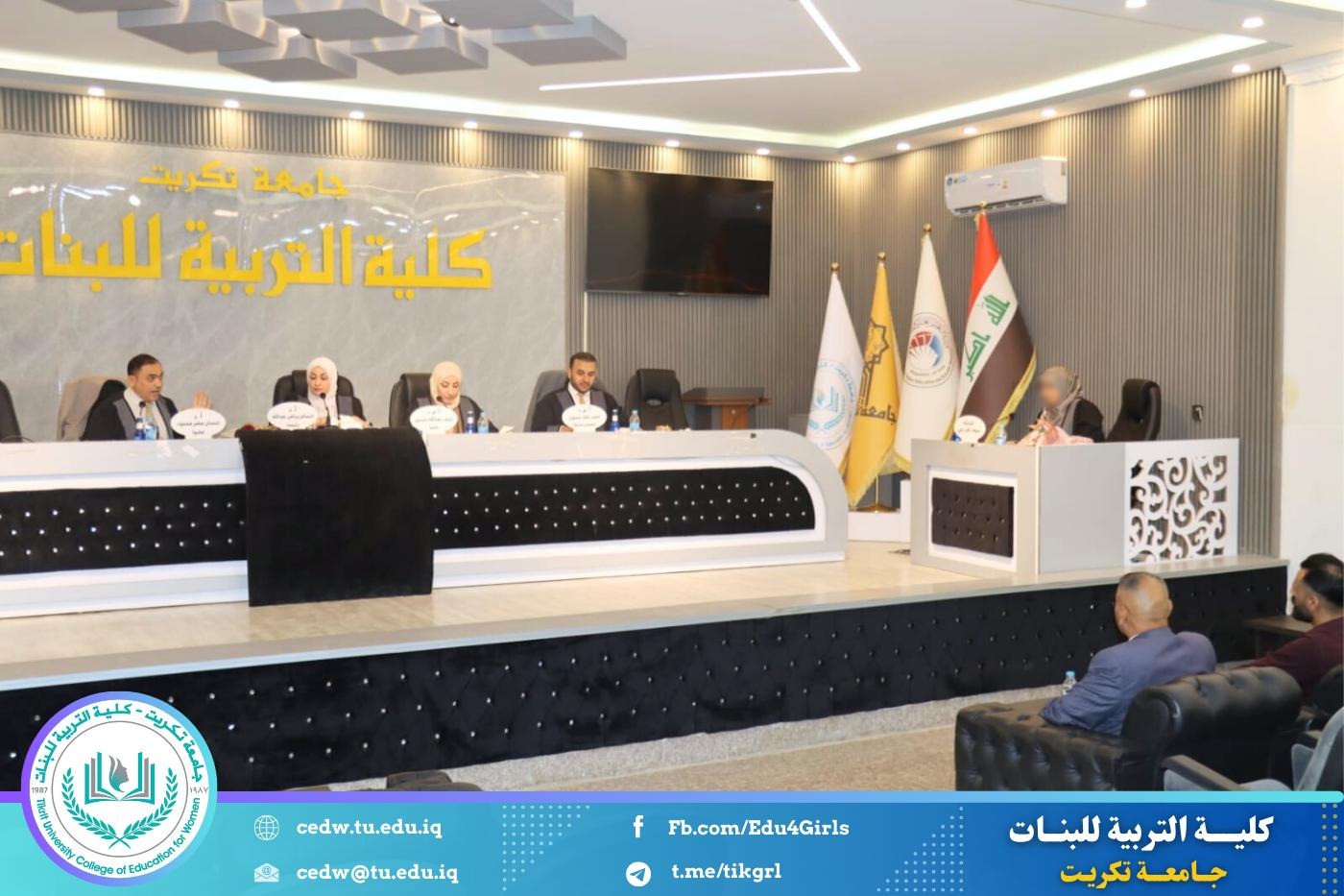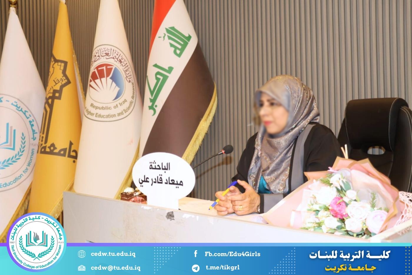 نوقشت في كلية التربية للبنات – قسم اللغة الإنكليزية، اليوم السبت الموافق 6 / 9 / 2025، على قاعة المرحوم الأستاذ الدكتور جايد زيدان في عمادة الكلية، رسالة الماجستير المقدمة من الطالبة ميعاد قادر علي، والموسومة: