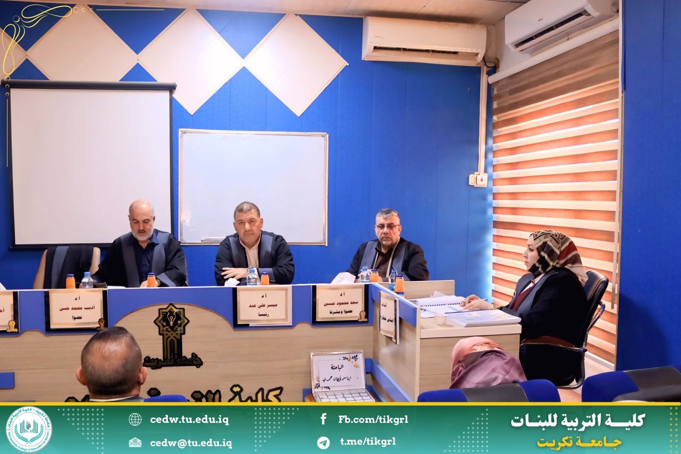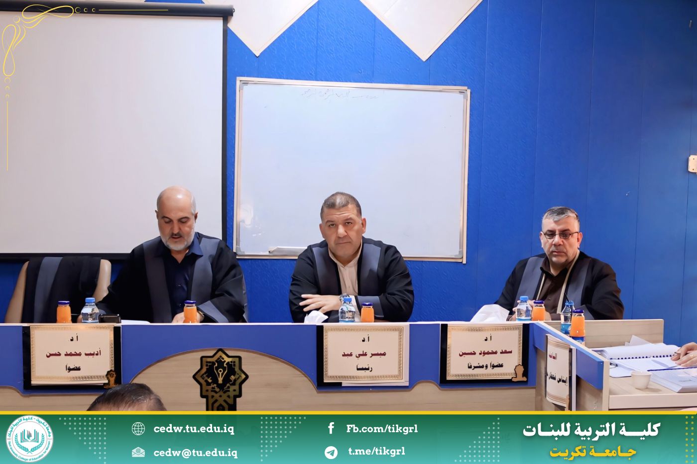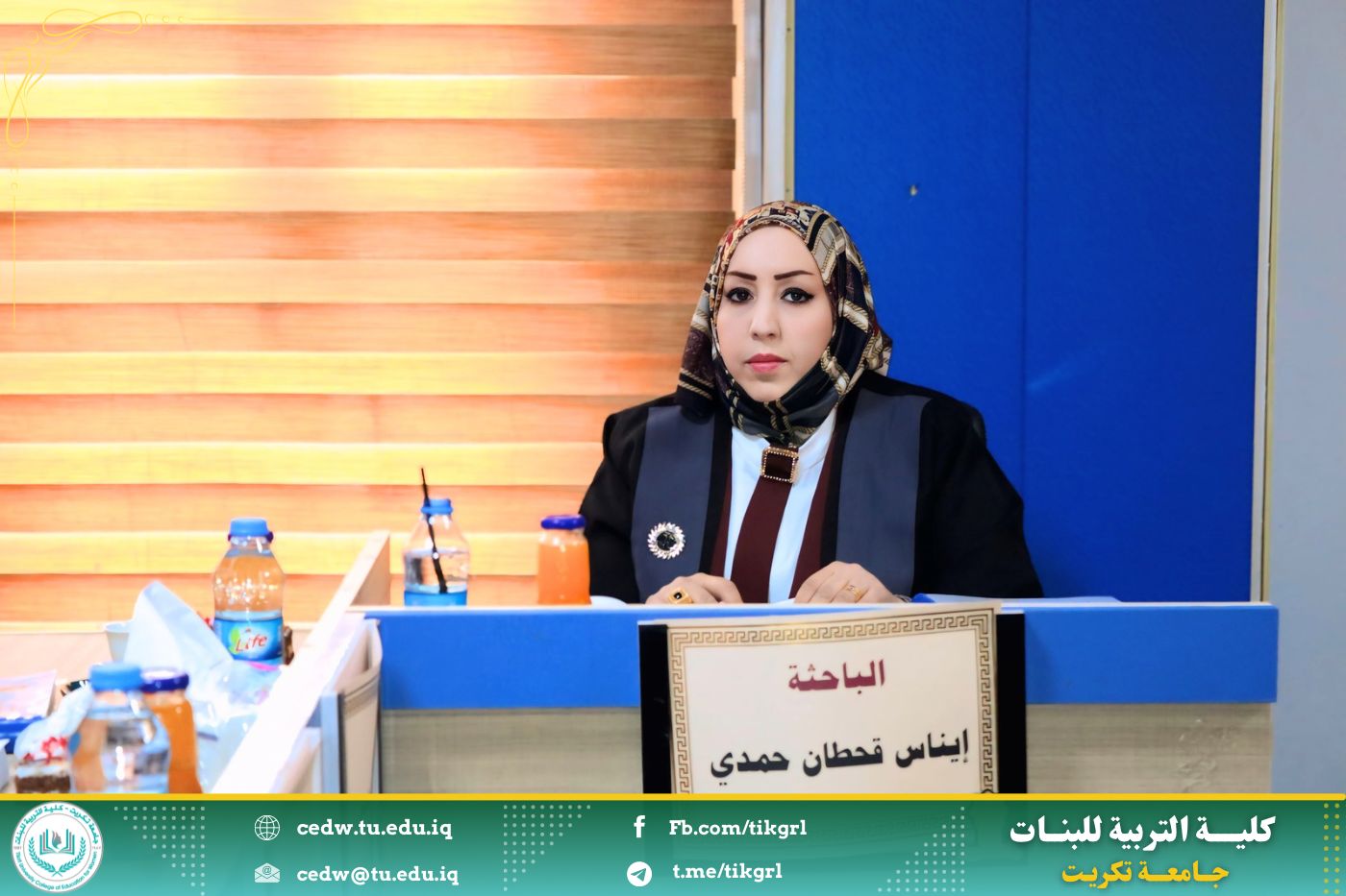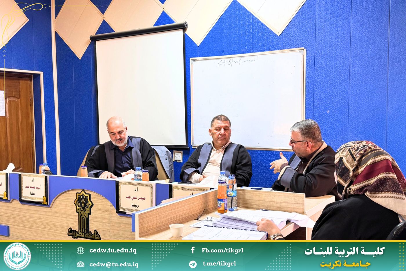 وفي ختام جلسة المناقشة، قررت اللجنة قبول الرسالة ومنح الطالبة إيناس قحطان حمدي درجة الماجستير في علوم القرآن، بعد إجراء التعديلات التي أوصت بها اللجنة.
