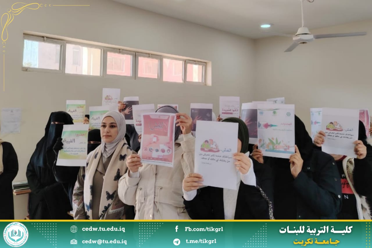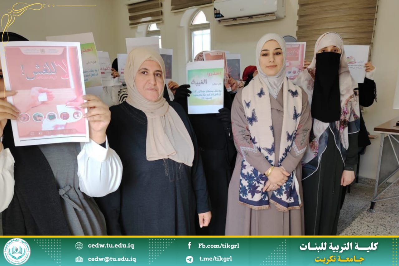 أقامت وحدة الارشاد بالتعاون مع قسم علوم القرآن في كلية التربيه للبنات وبالتعاون مع طالبات القسم حملة توعوية ضد ظاهرة المخدرات واخطارها على المجتمع وايضاً جميع الامراض النفسية او ما تسمى بأمراض القلوب منها (الغش والنميمة) في اليوم الاثنين الموافق 2/ 12/ 2024 من خلال لصق بوسترات توعويه ومطويات بينوا من خلالها المخاطر التي تؤدي إلى الادمان وكيفية التخلص والوقاية منها ، وكذلك عن ظاهرة الغش ومخاطرها حيث هدفت الحملة الى رفع مستوى الطالب والاعتماد على نفسه وارشاده الى الطرق الحديثة والصحيحة في المذاكرة خلال ايام الامتحانات للابتعاد عن التفكير بالغش كونه من السلوكيات غير الحميدة والبعيدة عن الاخلاق الاسلامية ، كما تم رفع بوسترات عن النميمةواثارها السلبية لما لها من تأثير في تفكيك العلاقات الاجتماعية ونشر الفتن داخل المجتمعات.