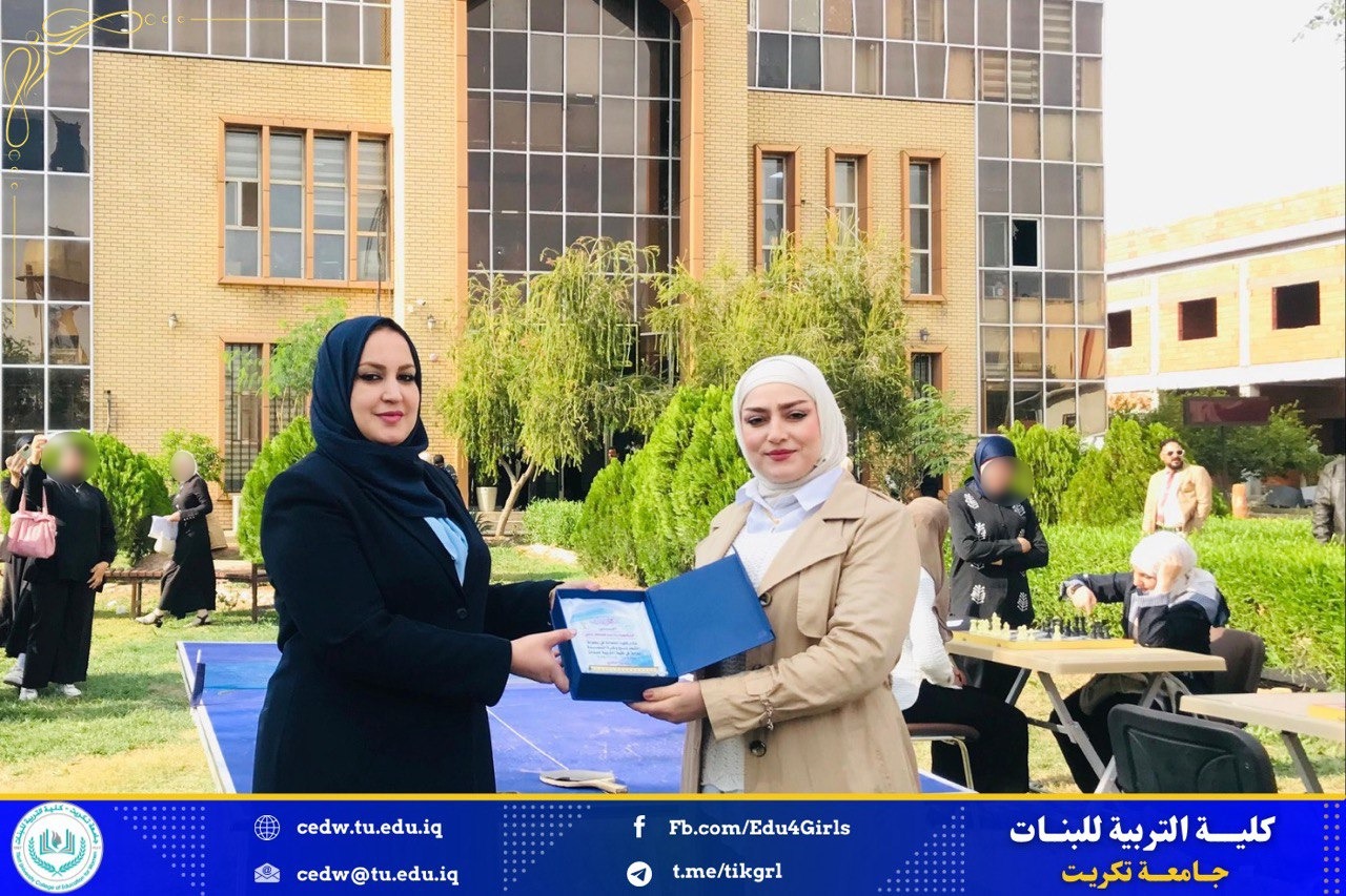 برعاية السيدة عميد كلية التربية للبنات الاستاذ الدكتورة نجلاء عبدالحسين عليوي ومتابعة شعبة النشاطات الطلابية في الكلية وبتعاون مع المديرية العامة لتربية صلاح الدين قسم النشاط الرياضي استضافت كلية التربية للبنات بطولة الشطرنج وكرة المنضدة بمشاركة نخبة من الطالبات من مختلف الاقسام وسط اجواء من التنافس والابداع يوم الثلاثاء الموافق ١٢/ ١١/ ٢٠٢٤