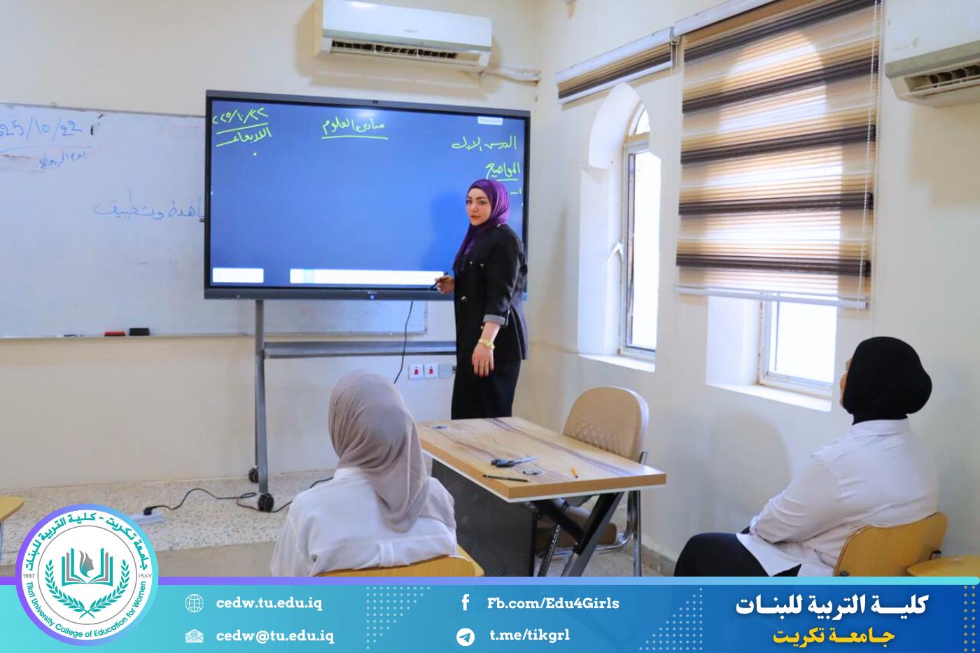 ضمن متطلبات مادة المشاهدة والتطبيق في قسم الاقتصاد المنزلي – كلية التربية للبنات / جامعة تكريت، قدّمت طالبات المرحلة الرابعة صباح اليوم الأربعاء الموافق ٢٢ تشرين الأول ٢٠٢٥ محاضرة تطبيقية مميزة في مختبر التربية العملية، جسّدن من خلالها مهاراتهن التربوية والتعليمية المكتسبة خلال فترة دراستهن الجامعية.