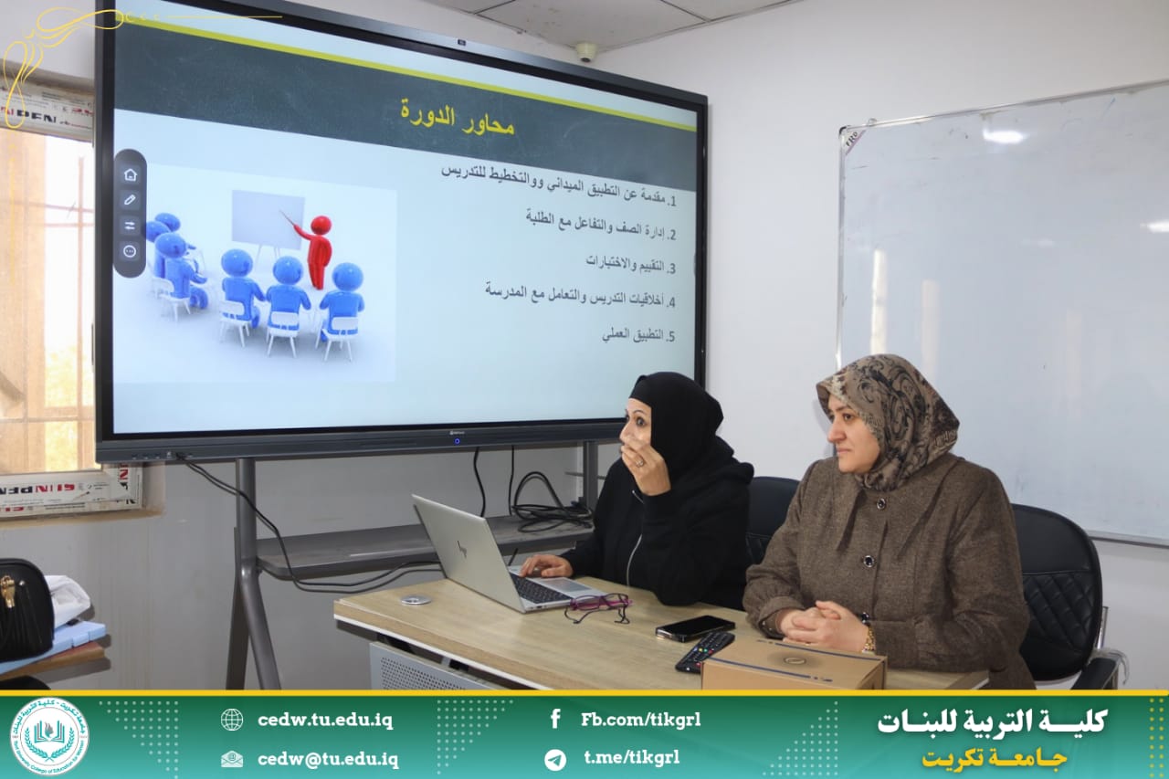 في ختام الدورة تم فتح باب النقاش أمام الحاضرين لتبادل الأفكار والمقترحات التي من شأنها أن تسهم في أعداد وتطوير قدرات الطالبات علمياً وعملياً من اجل اخراج كوادر تدريسية لها القدرة على التعامل مع الطلبة داخل الصفوف الدراسية.