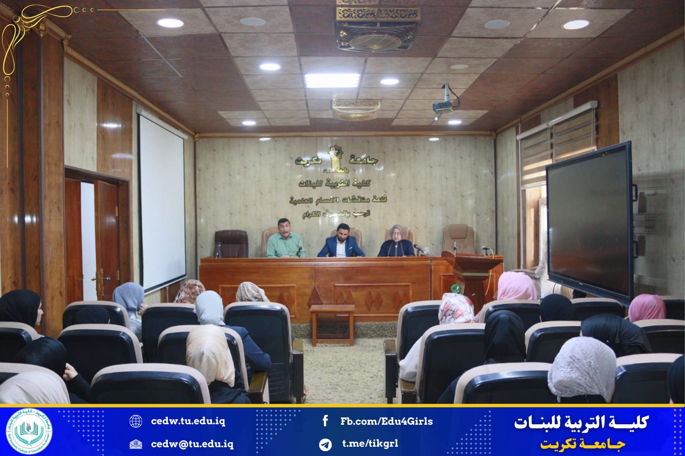 برعاية الأستاذ الدكتور وعد محمود رؤوف المحترم رئيس جامعة تكريت وبإشراف الأستاذ الدكتورة نجلاء عبدالحسين عليوي المحترمة عميد كلية التربية للبنات اقامت وحدة الارشاد بالتعاون مع قسم العلوم التربوية والنفسية ندوة بعنوان : (العوامل النفسية والاجتماعية ودورها في الحد من التطرف الفكري) في اليوم الاحد الموافق 24/ 11/ 2024 على قاعة السمنار في بناية الأقسام العلمية